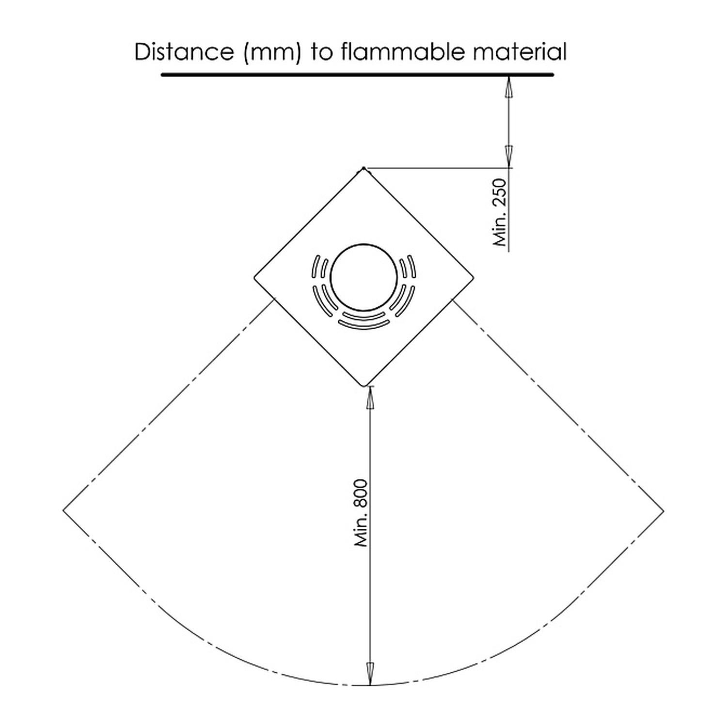 Min. Abstände: hinten 250 mm, seitlich 250 mm