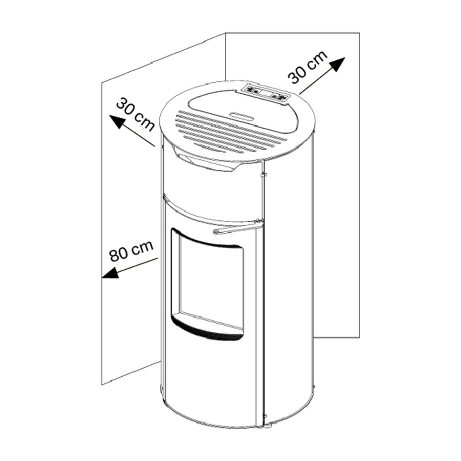 Mindestabstände: hinten 300 mm, seitlich 300 mm, vorne 800 mm