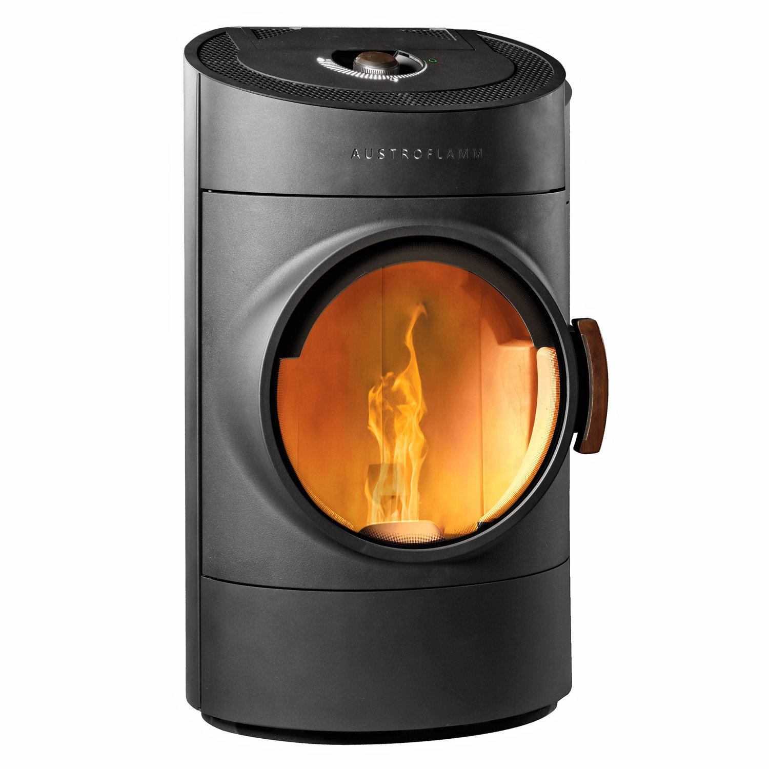 Der Austroflamm Clou ist ein moderner Pelletofen mit einzigartigem Runddesign, großer Bullaugen-Sichtscheibe und eleganten Nussholz-Details. Mit 10 kW Leistung, integriertem Raumthermostat, externem Luftanschluss und optionaler WLAN-Steuerung bietet er höchste Effizienz, Komfort und Design für Ihr Zuhause.