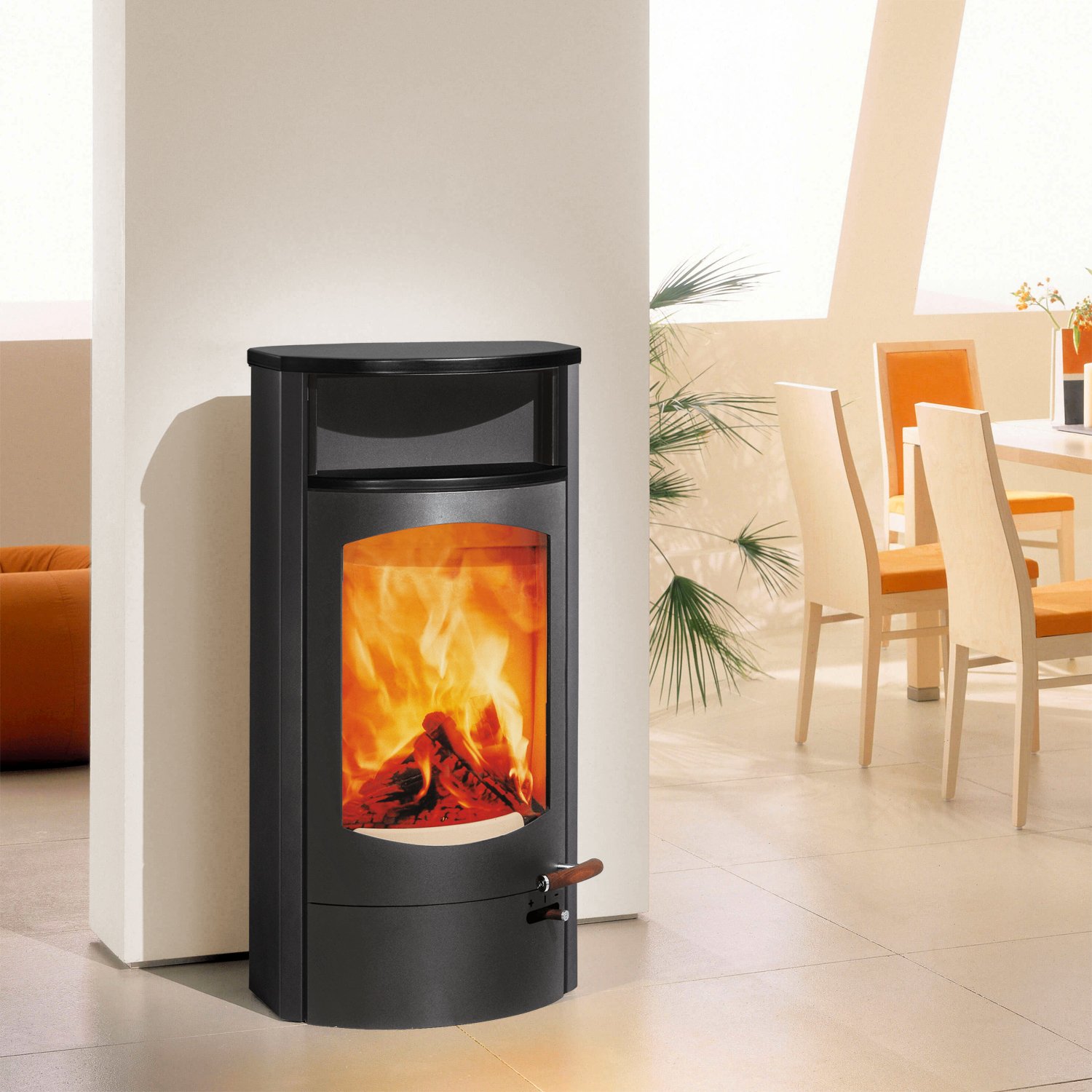 Der Austroflamm Koko 2.0 ist ein moderner Kaminofen mit 6 kW Leistung, der Eleganz und Effizienz vereint. Mit großer Sichtscheibe, Scheibenspülung und Warmhaltefach bietet er höchsten Komfort und ein beeindruckendes Flammenbild. Dank DIBt-Zulassung ist er ideal für raumluftunabhängigen Betrieb – perfekt für moderne Passivhäuser. Der Innenraum aus Keramott sorgt für saubere Verbrennung, 80 % Wirkungsgrad und nachhaltige Wärmeleistung.
