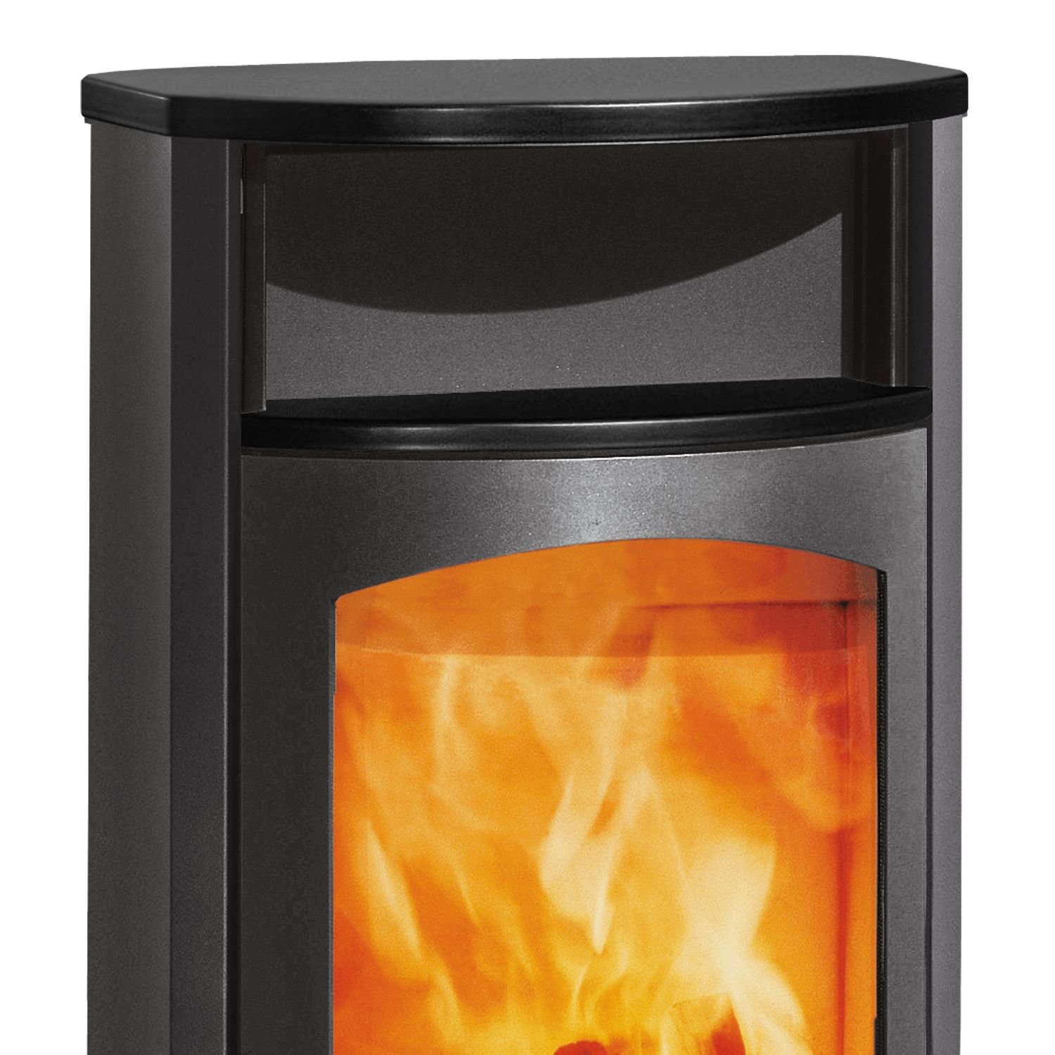 Austroflamm Koko 2.0 – Kaminofen aus Stahl gussgrau mit Speckstein-Elementen, Rauchrohr oben
