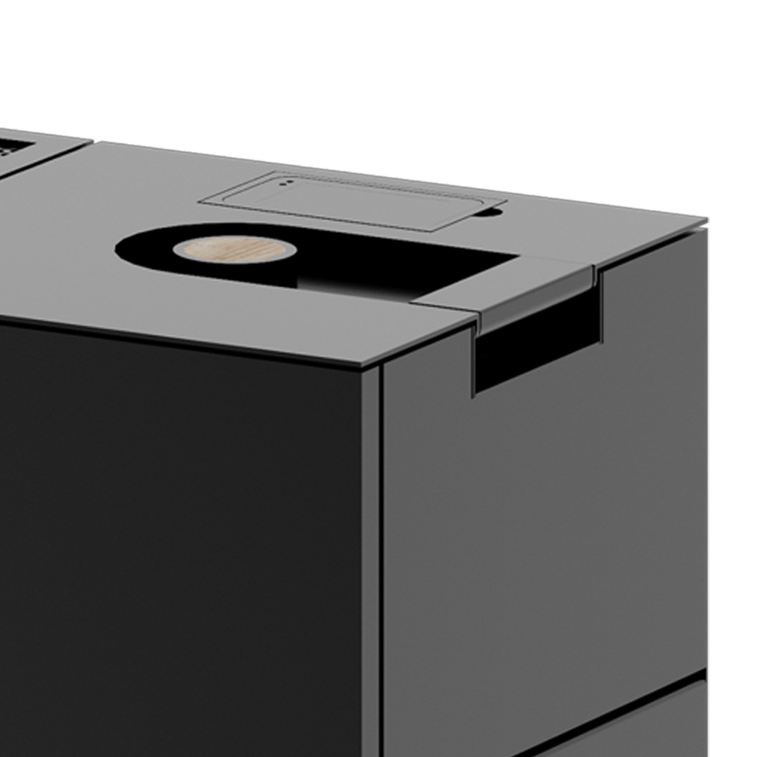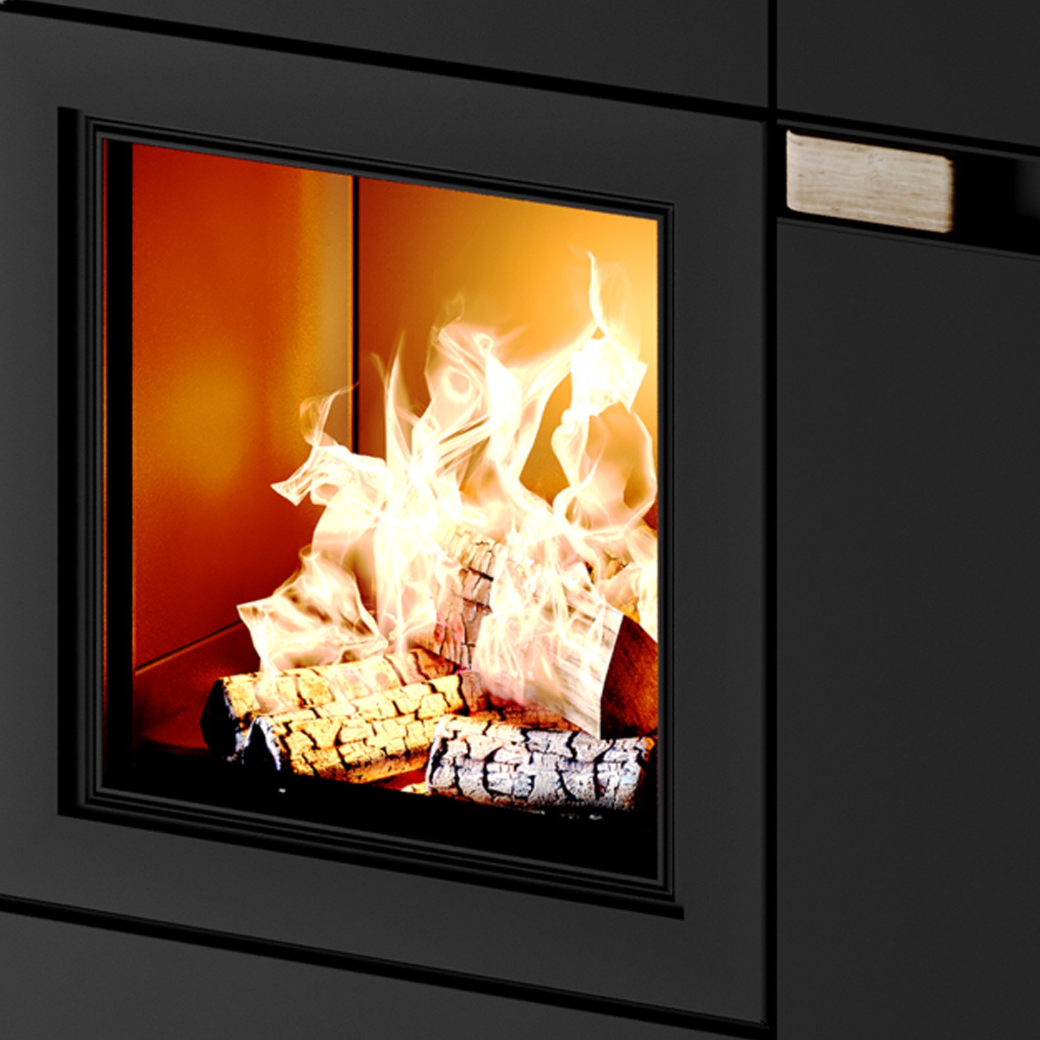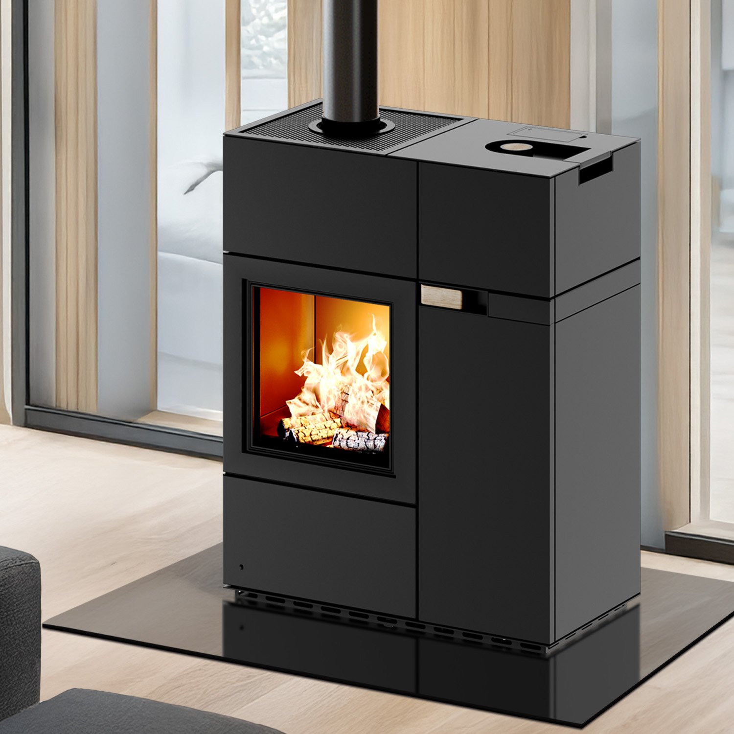 Das elegante, schwarze Stahlgehäuse fügt sich harmonisch in moderne Wohnkonzepte ein und verleiht jedem Raum eine hochwertige, klare Ästhetik.
