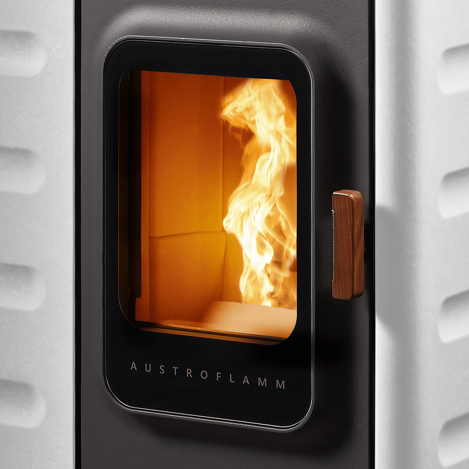 Der Austroflamm Ruby Pelletofen kombiniert moderne Heiztechnik mit exklusiven Designakzenten. Die edle Keramikverkleidung oder Keramik-Topplatte sowie der eleganten Nussholz-Griff verleihen dem Ofen eine hochwertige Optik. Die große Gusseisen-Sichtscheibe bietet einen beeindruckenden Blick auf das harmonische Flammenspiel und sorgt für eine gemütliche Atmosphäre.