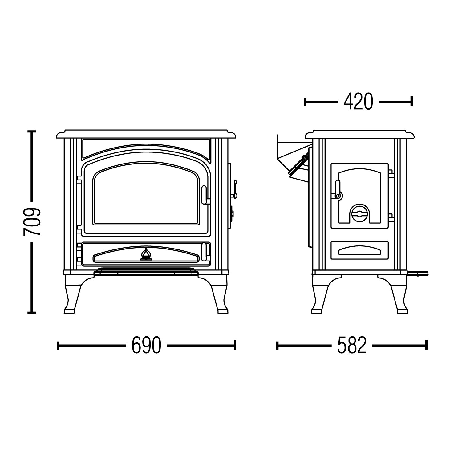 | Rauchrohranschluss | Ø 150 mm (oben oder hinten) |