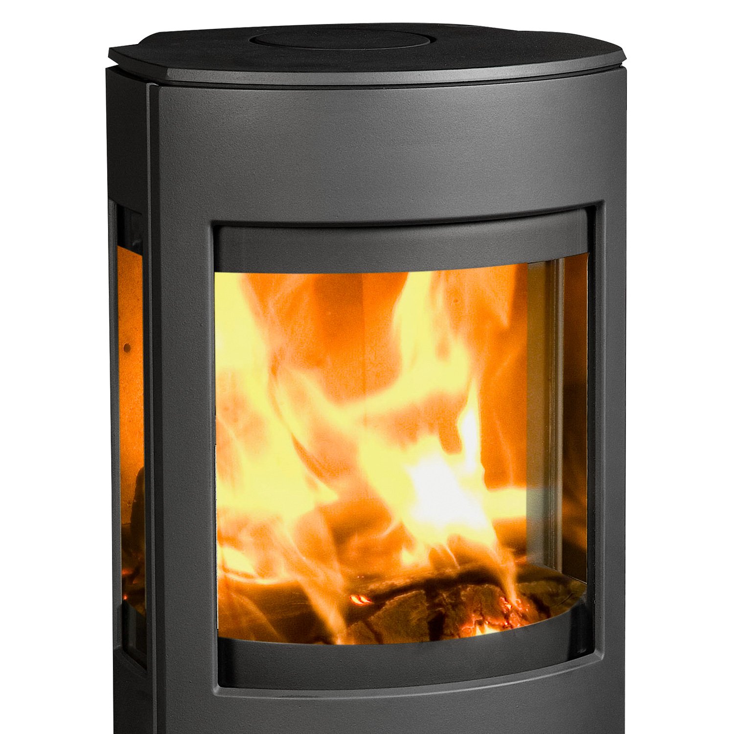 Ein beeindruckendes Panoramafeuer durch große Frontscheibe und zwei Seitenscheiben.