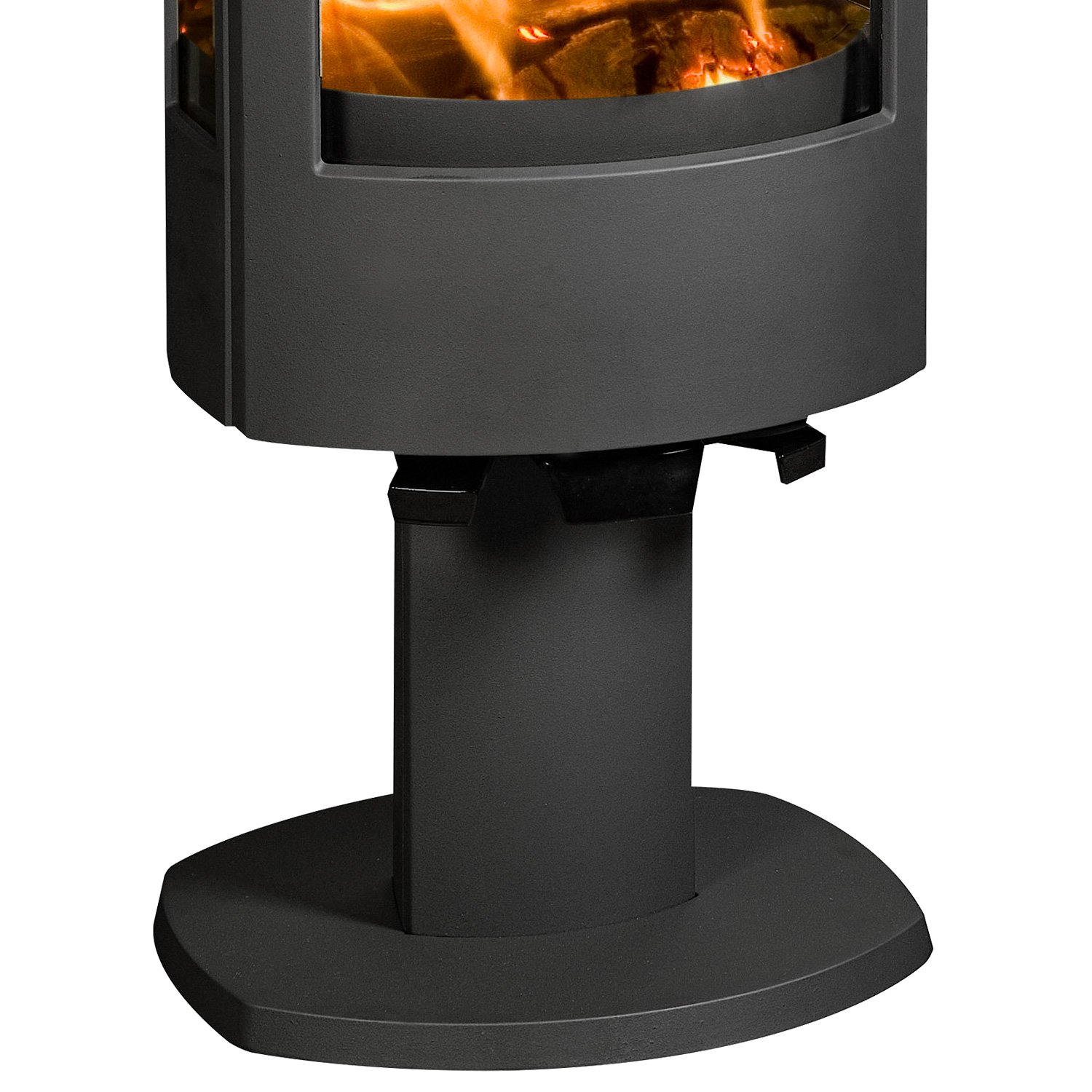 Für maximale Flexibilität ist der Astro 4 CB/P sowohl mit einem oberen als auch einem hinteren Rauchrohranschluss ausgestattet. Ebenso können Sie den Kamin bei Bedarf mit externer Zuluft betreiben – wahlweise über die Rückseite oder die Unterseite des Sockels.