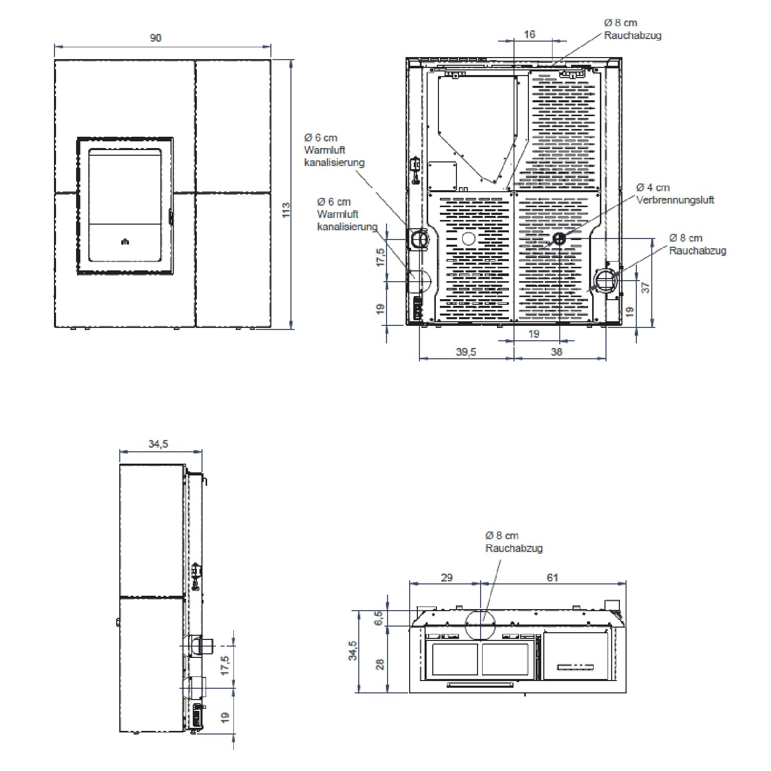 Rauchrohranschluss: oben, hinten, seitlich (Ø 80 mm)