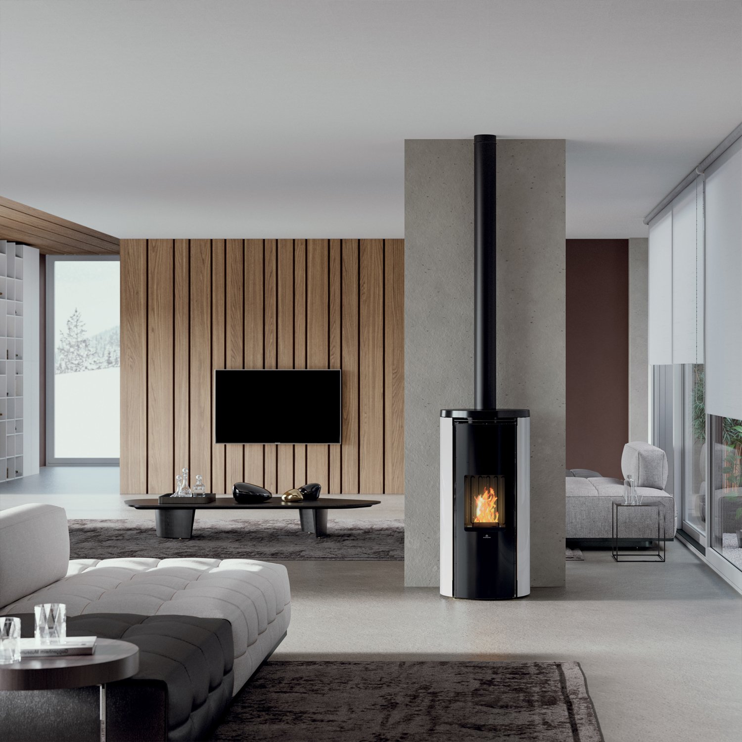 Der Ofen ist in Varianten mit Stahlverkleidung Schwarz oder Glasseiten in Schwarz oder Weiß erhältlich und fügt sich perfekt in moderne Wohnräume ein. Die verbaute Air-Tight-Technologie ermöglicht einen vollständig raumluftunabhängigen Betrieb, ideal für Passivhäuser und energieeffiziente Gebäude.
