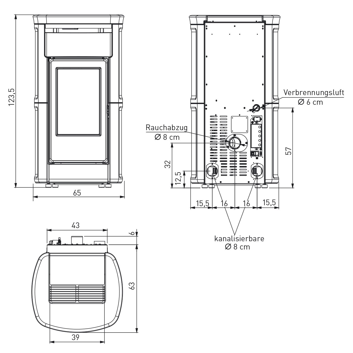 Rauchrohranschluss: Ø 80 mm (hinten)