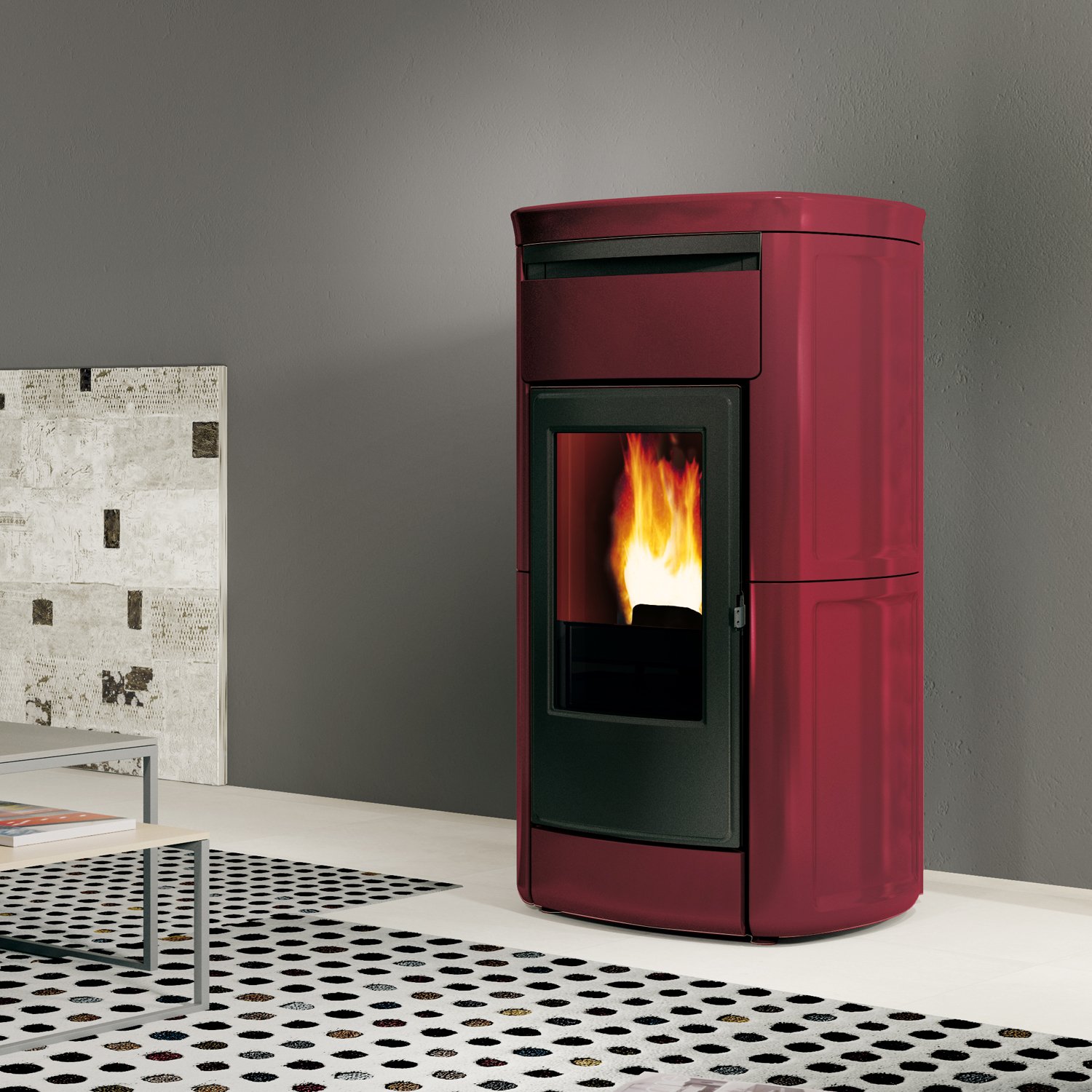 Der großzügige 32-kg-Pellettank sorgt für lange Heizintervalle und reduziert den Nachfüllaufwand, während ein Verbrauch von 3,4 kg/h eine zuverlässige Wärmeleistung sicherstellt.