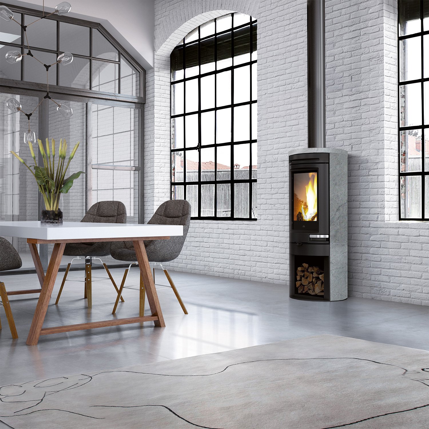 Edilkamin Tally Evo Kaminofen – 8,1 kW, hohe Effizienz, große Sichtscheibe, Naturstein/Stahl, A+ Heizleistung