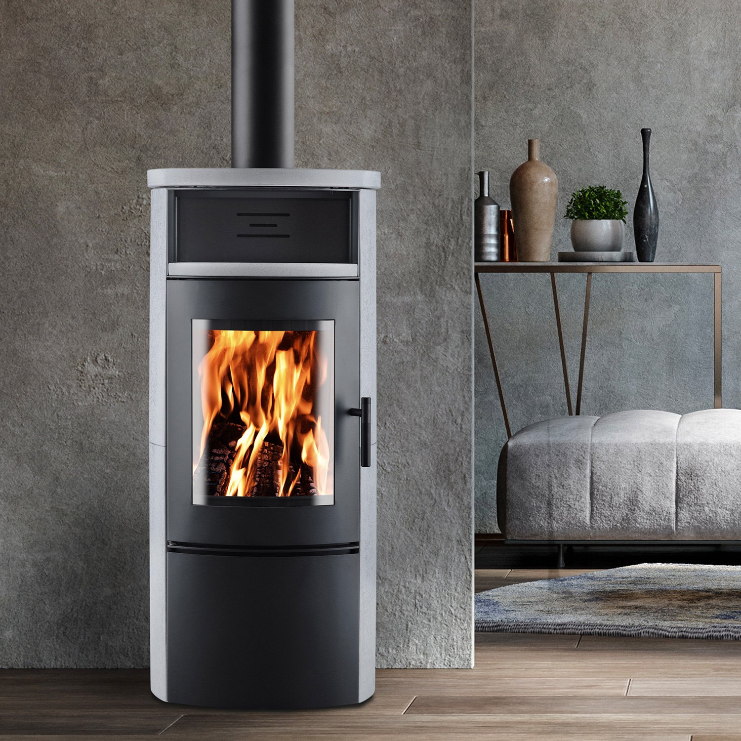Eurohr Xero Kaminofen – 7 kW Holzofen mit Speicherelementen & geschwungener Sichtscheibe