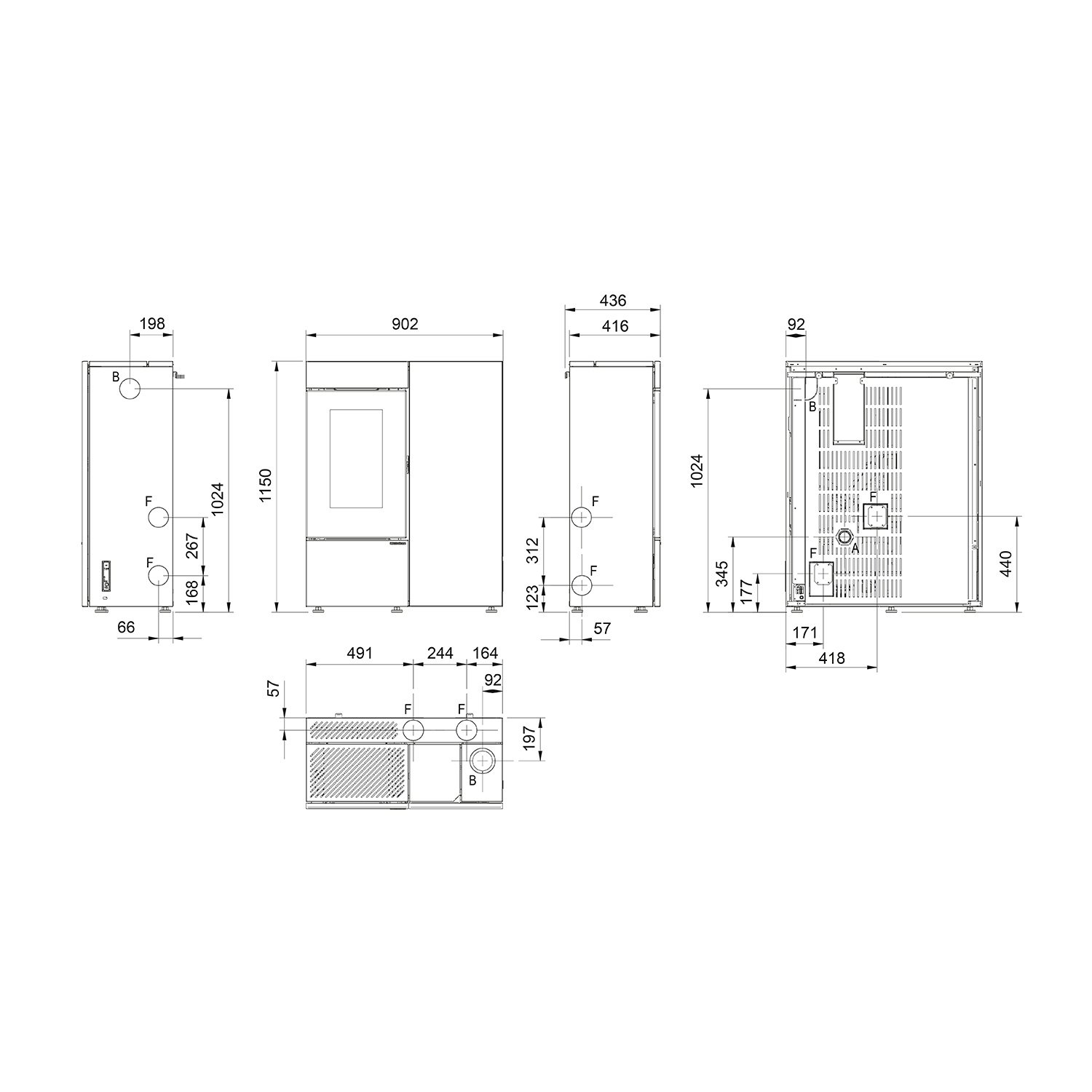 Rauchrohranschluss: Ø 80 mm (hinten)