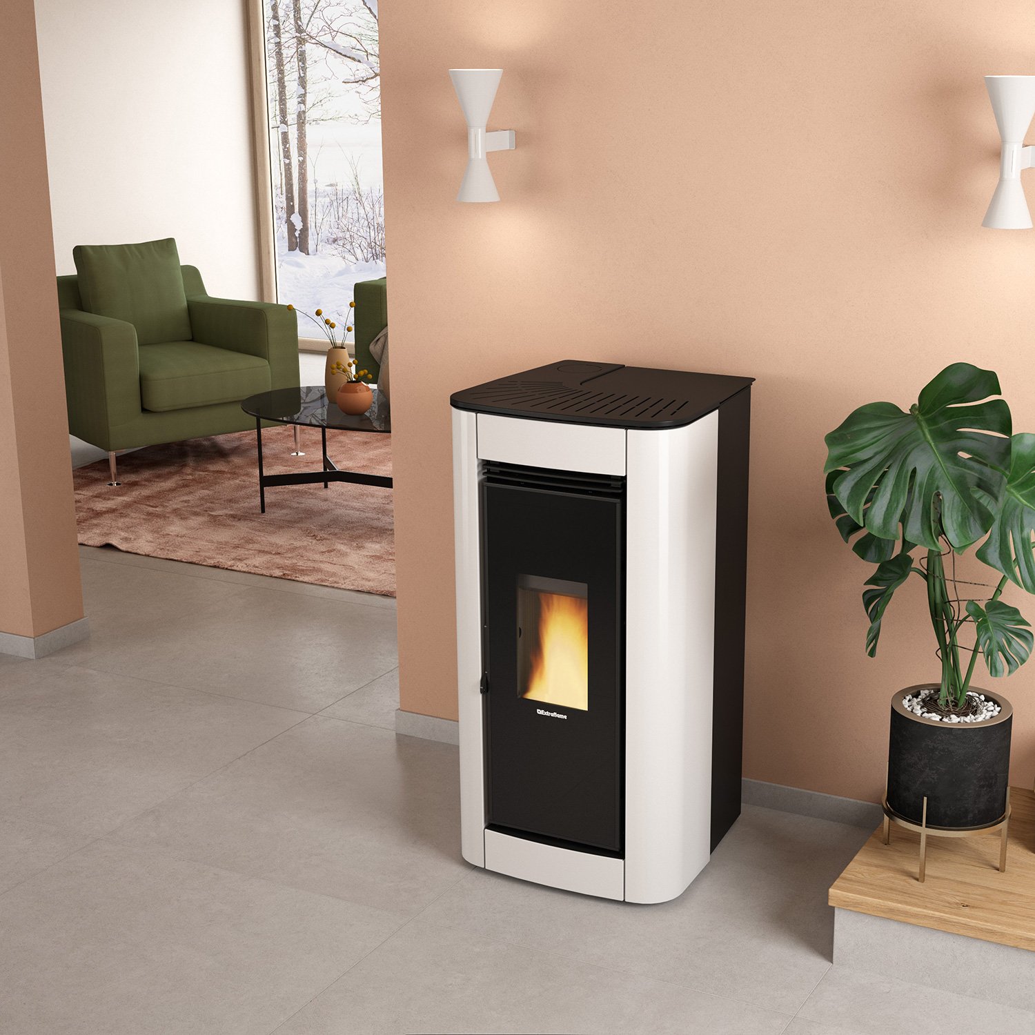Extraflame Ilary Pelletofen 8 kW – leiser Betrieb, hohe Effizienz, Stahlverkleidung in Schwarz oder Weiß