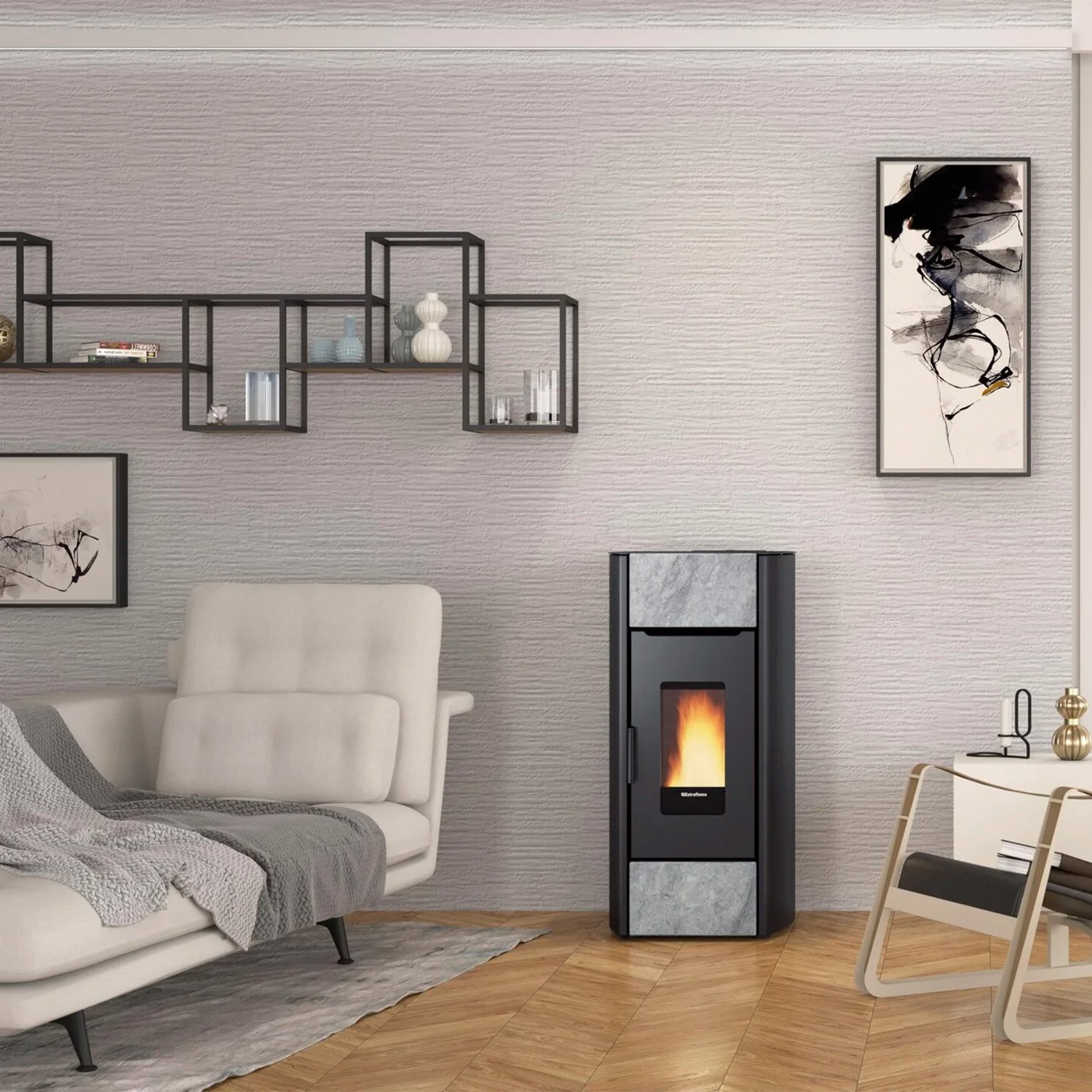 Der Extraflame Prestige Line Mirka 16 Pelletofen steht für italienische Ingenieurskunst, hohe Effizienz und elegante Wohnraumgestaltung. Mit seiner hochwertigen Naturstein-Verkleidung, der beeindruckenden Heizleistung von 16 kW und einer Energieeffizienz von 91 % bietet der Ofen eine moderne und nachhaltige Heizlösung für große Räume.
