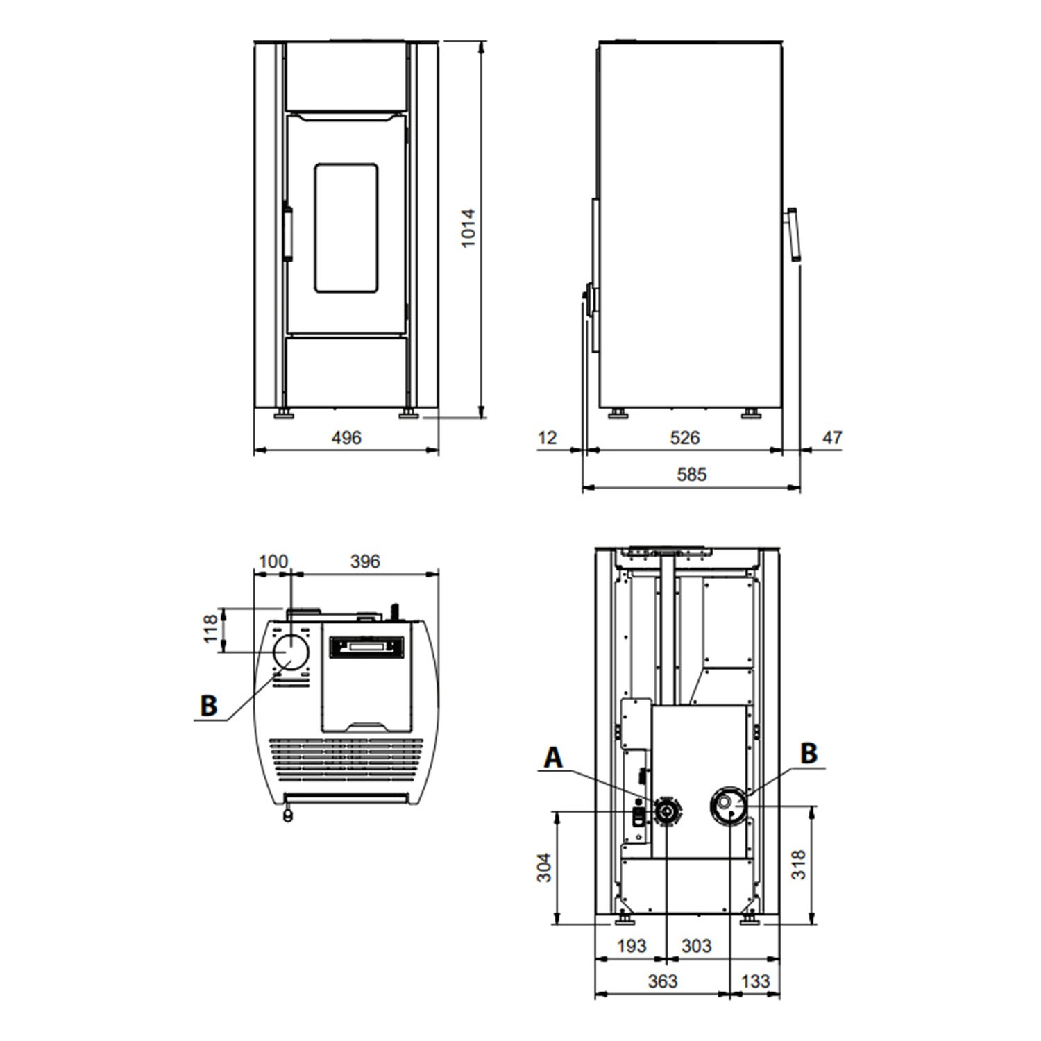 Rauchrohranschluss: Ø 80 mm – hinten oder oben