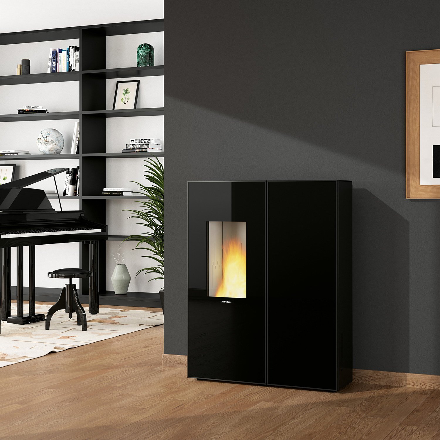 Der Extraflame Prestige Line Sharon Plus Crystal Pelletofen in Schwarz verbindet elegantes Design mit moderner Heiztechnik. Mit 10 kW Leistung, 91,7 % Wirkungsgrad und Crystal-Front sorgt er für starke Wärmeleistung, geringe Emissionen und stilvollen Wohnkomfort.