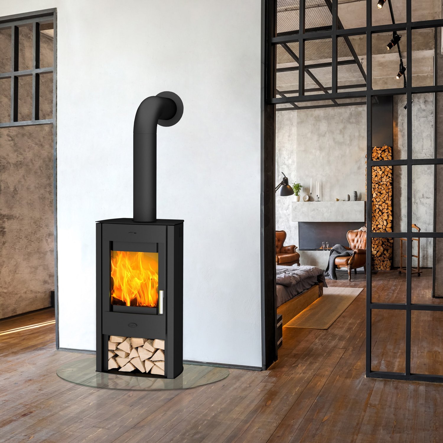 Fireplace Tuvalu Kaminofen – 6 kW | Puristischer Stahl-Ofen mit großer Sichtscheibe & optionaler Naturstein-Topplatte