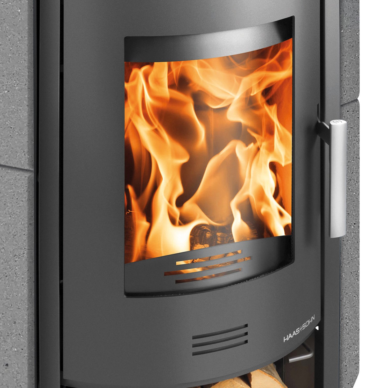 Praktischer Stauraum direkt unter dem Brennraum für schnellen Holz-Nachschub.