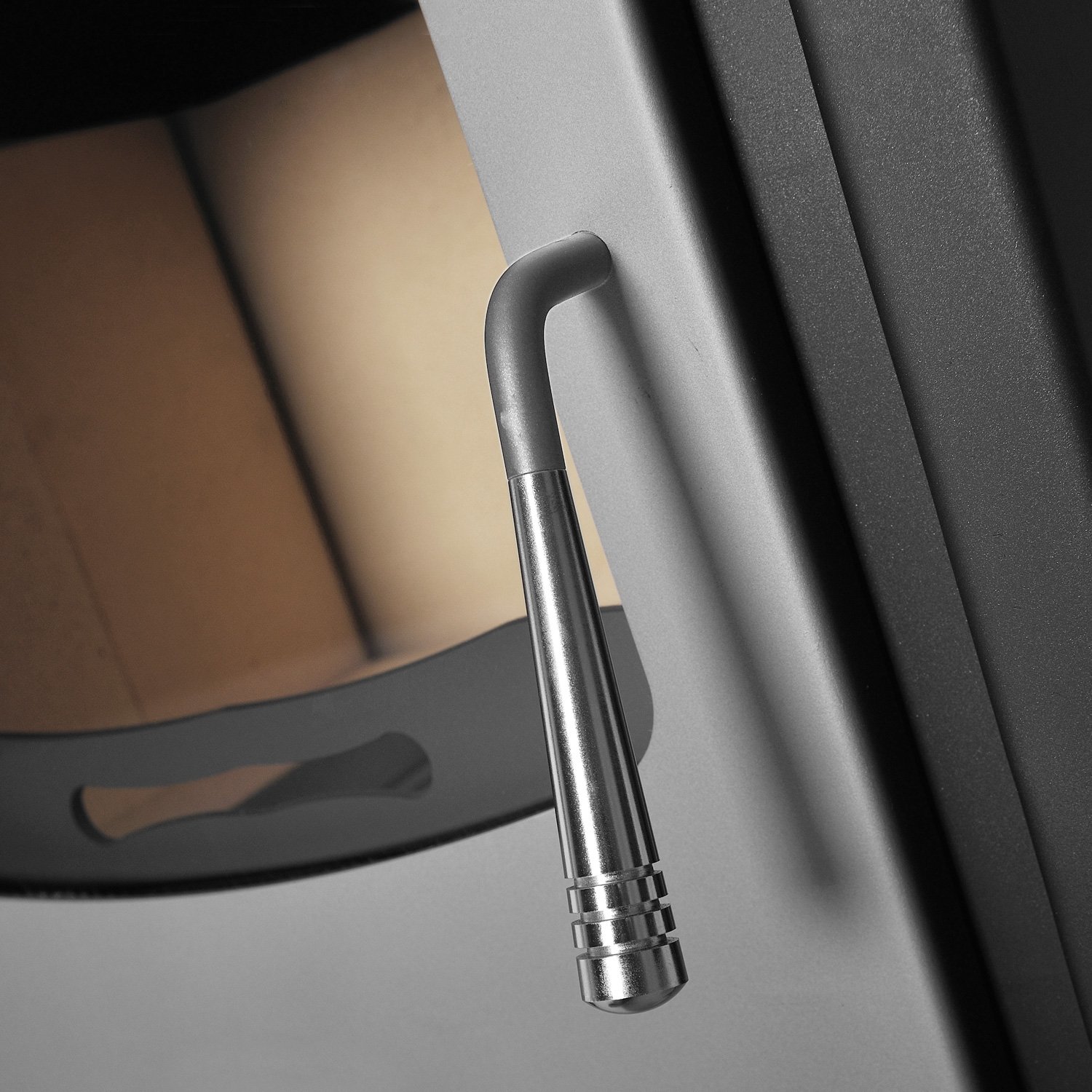 Ein vorgewärmter Luftstrom hält die Scheibe frei von Ruß – für einen dauerhaft klaren Blick.