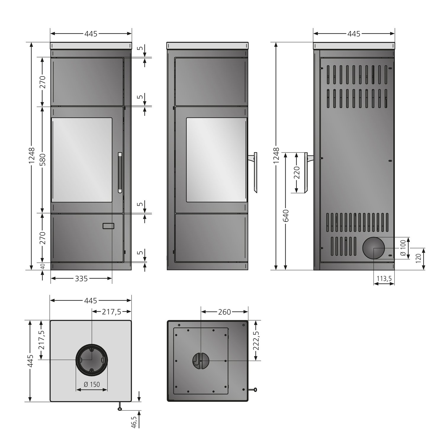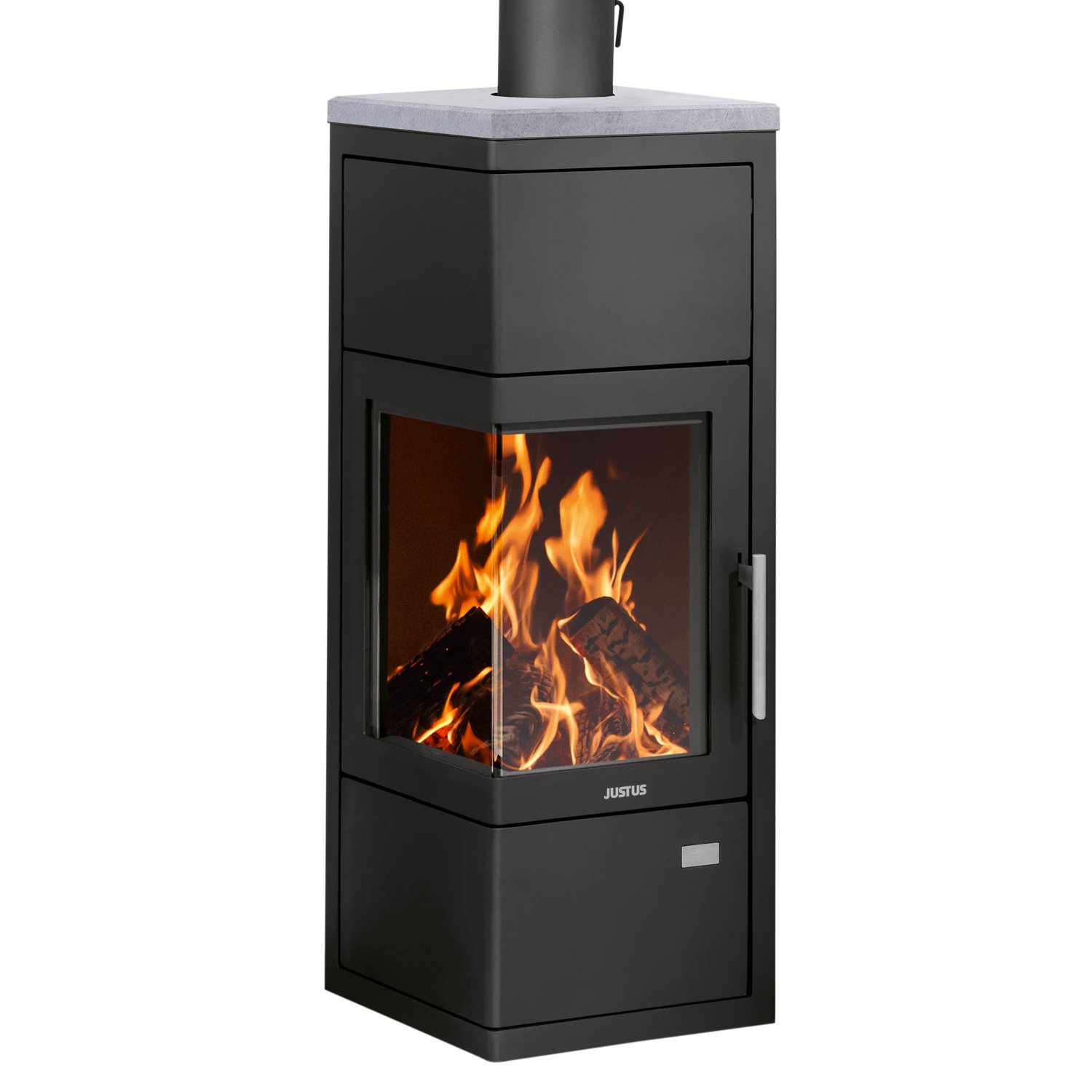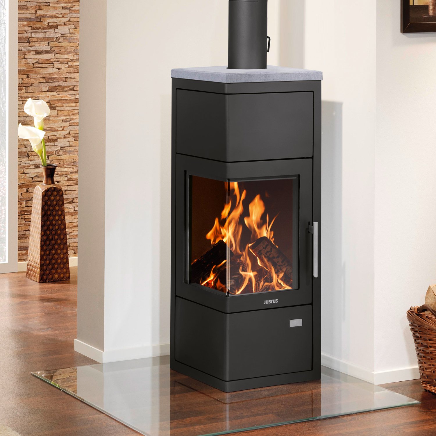 Justus Diego wärmePLUS Kaminofen – 6 kW, Wärmespeicher, Eckmodell, Bauart 1, Scheibenspülung