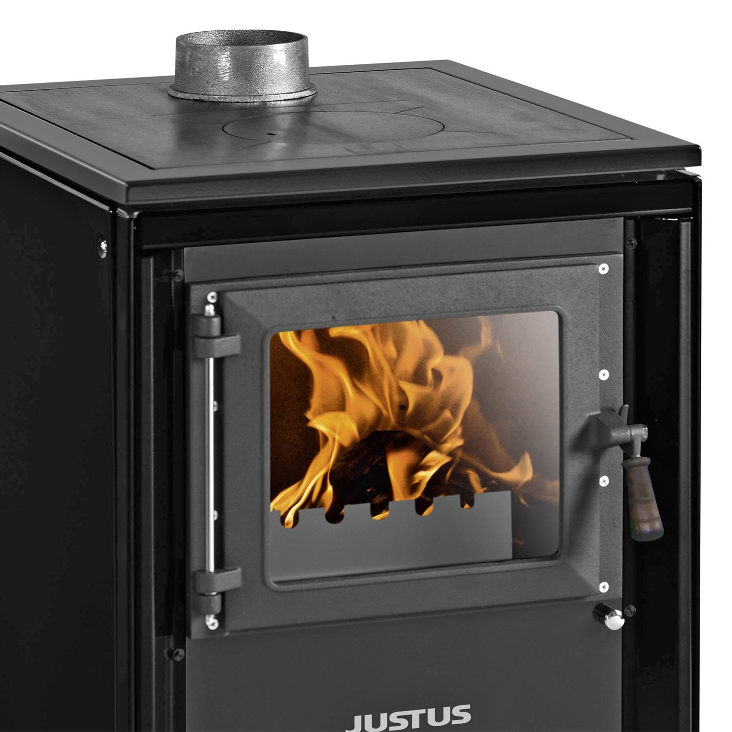 Justus Rustico-50 2.0 – 7 kW Küchenofen Schwarz mit Kochplatte & Scheibenspülung