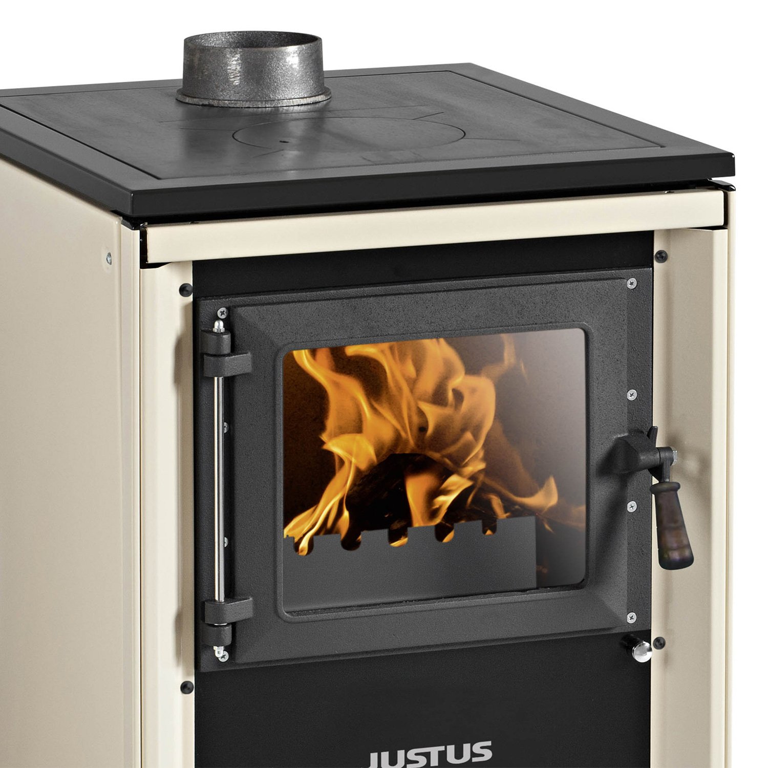 Justus Küchenofen Rustico-50 2.0 Cremeweiß – 7 kW Holzherd mit Kochplatte & Oberem Rauchrohranschluss