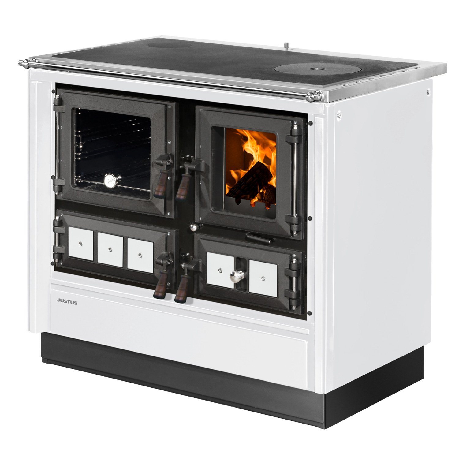 Justus Rustico-90 2.0 Küchenofen – 7 kW Holzherd mit Backfach & Edelstahlrahmen – Weiß