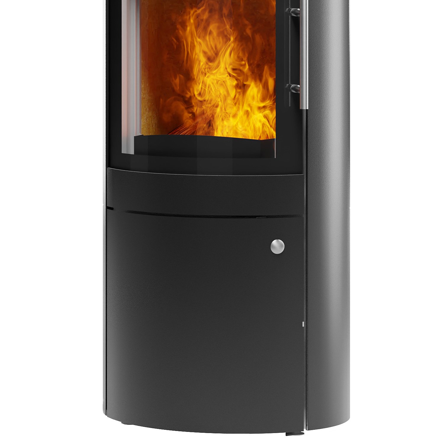 Mit seiner ovalen Form fügt sich Leo harmonisch in jedes Wohnkonzept ein. Wählen Sie zwischen einer komplett schwarzen Stahlverkleidung oder einer Seitenausführung aus Naturstein, die zusätzlich Wärme speichert und den Ofen optisch aufwertet.