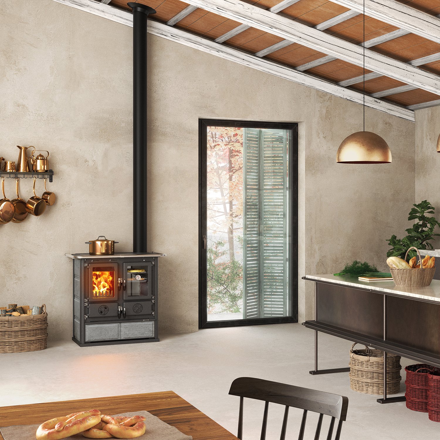 Der La Nordica Rosetta 5.0 ist ein leistungsstarker 7,9 kW Küchenofen mit nostalgischem Design, großem Backfach, Kochplatte und hochwertiger Naturstein- oder Keramikverkleidung. Er beheizt bis zu 226 m³, bietet einen hohen Wirkungsgrad von 86,9 % und erfüllt alle modernen Umweltstandards wie BImSchV Stufe II und EcoDesign 2022.