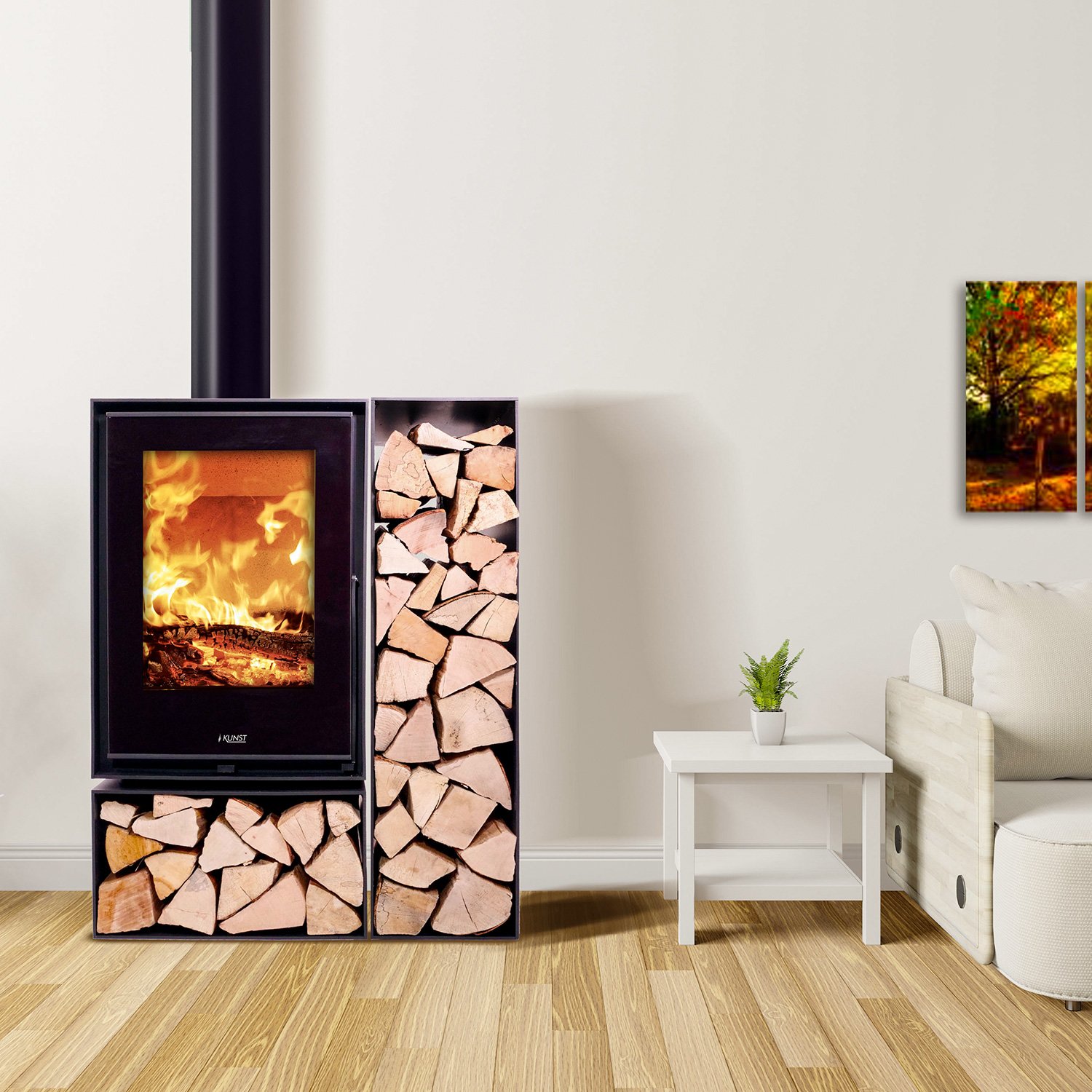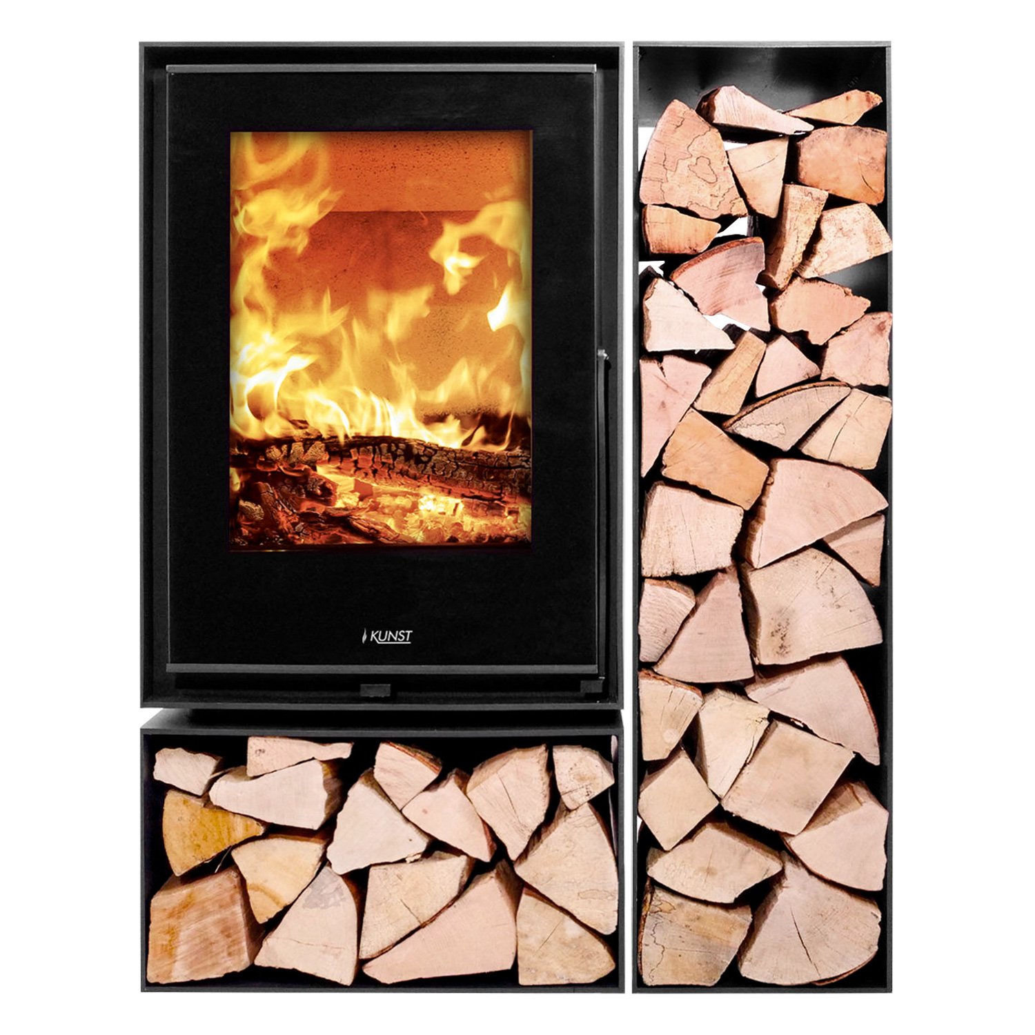 Kunst Stoves Ficus Kaminofen – 7,5 kW | Moderner Holzofen mit Panoramascheibe & Holzfach