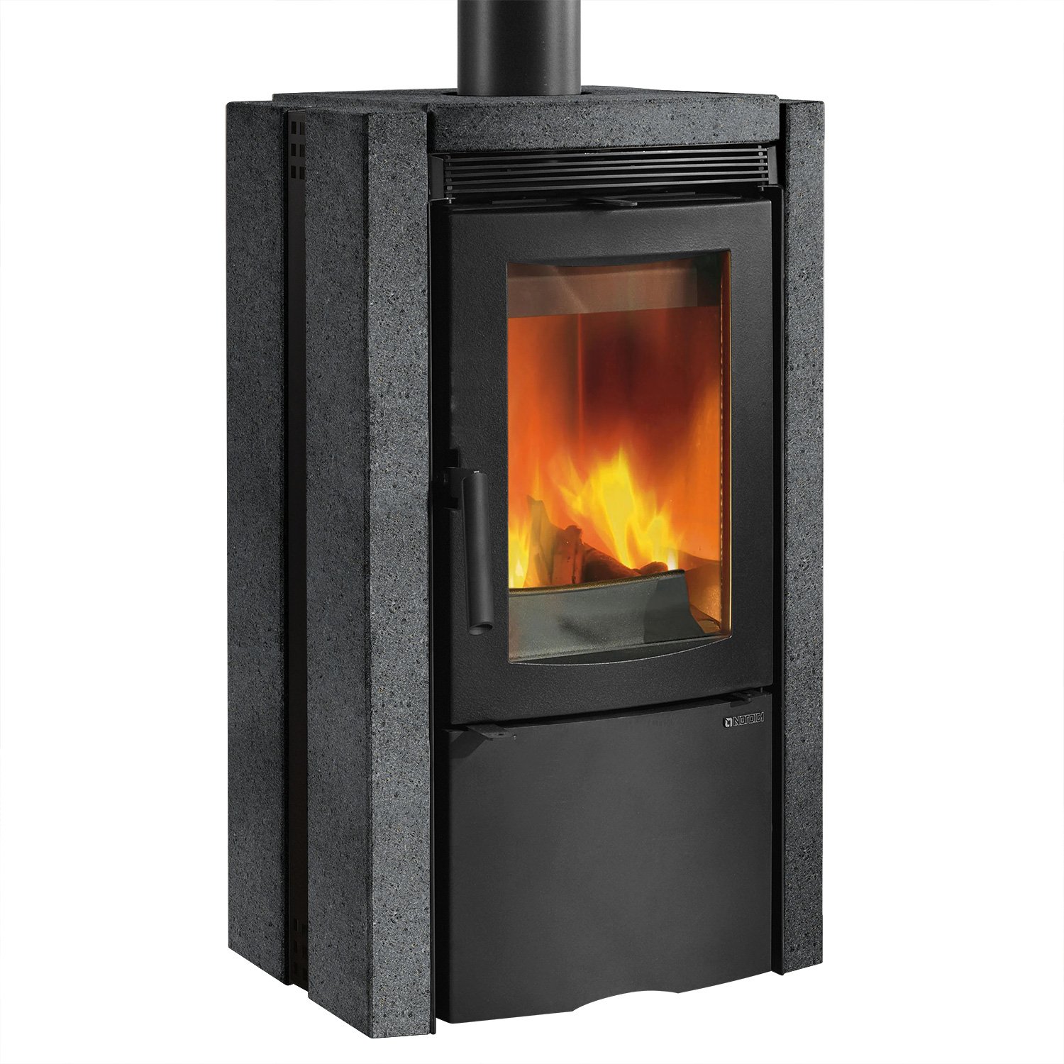 Die Kombination aus langlebigem Gusseisen, spezieller Nordiker™-Brennraumauskleidung und einer massiven 60 mm starken Vulkanstein-Verkleidung macht diesen Kaminofen zu einem leistungsstarken und hochwertigen Wärmespender.