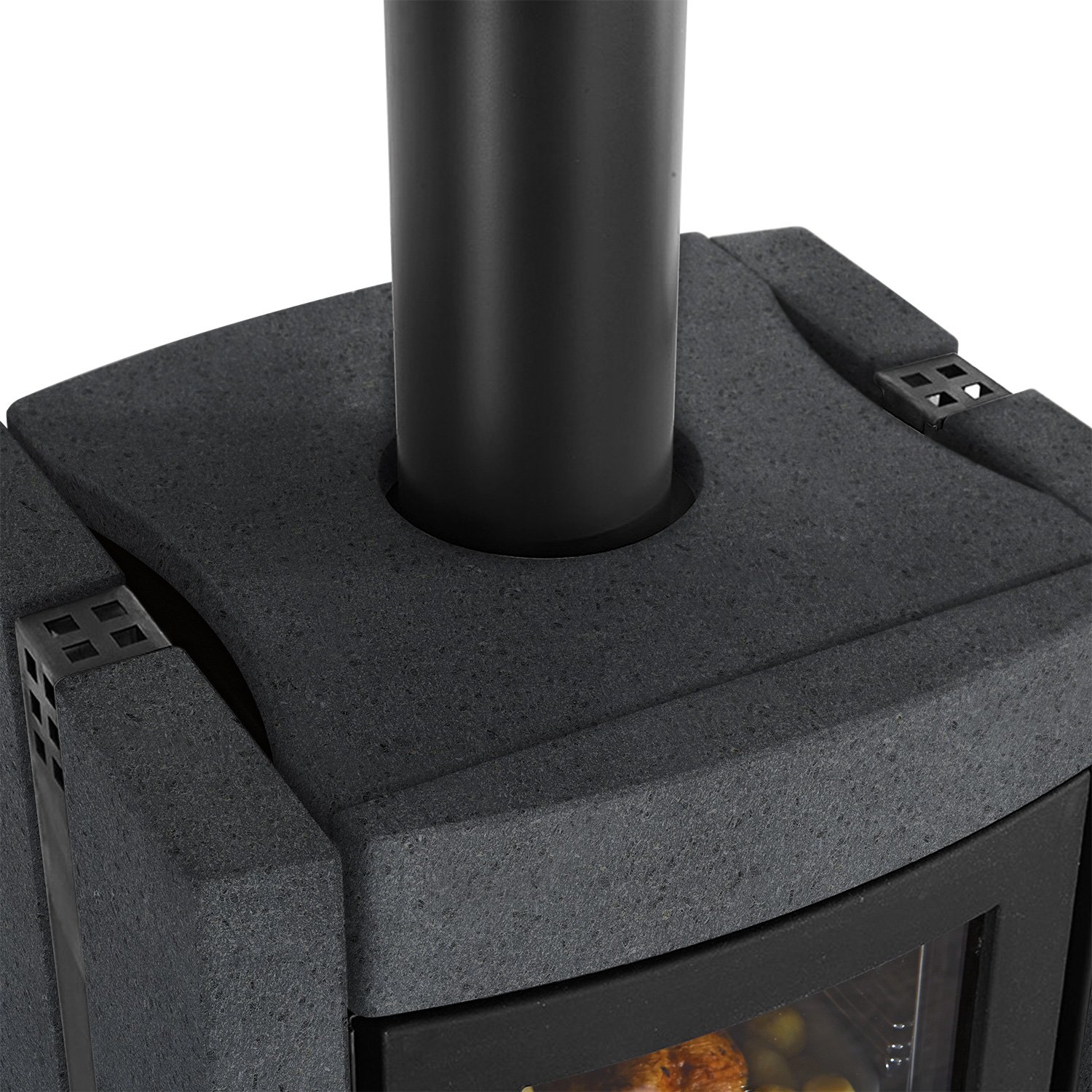 Der Luftstrom über die große Keramikglasscheibe hält das Sichtfenster sauber und bietet jederzeit klare Sicht auf das Flammenspiel.