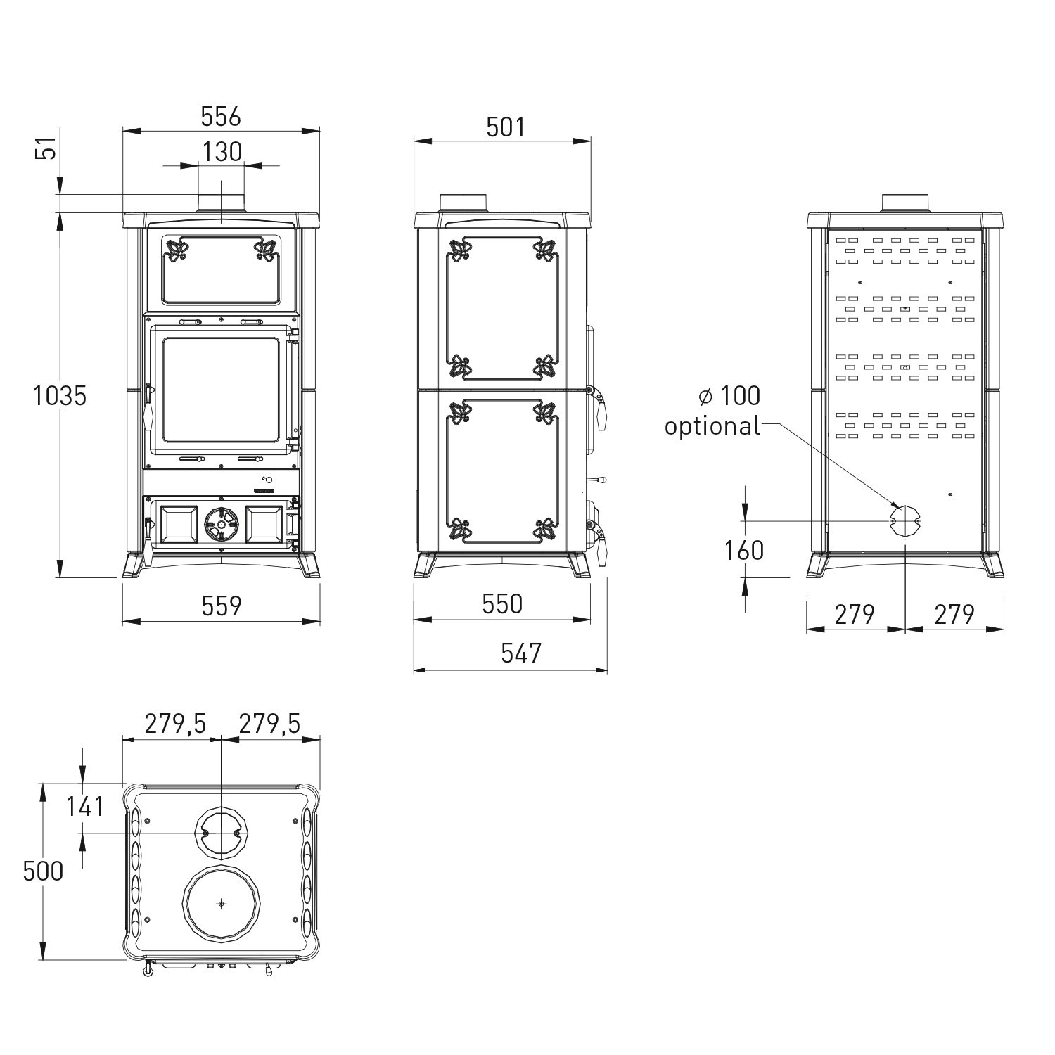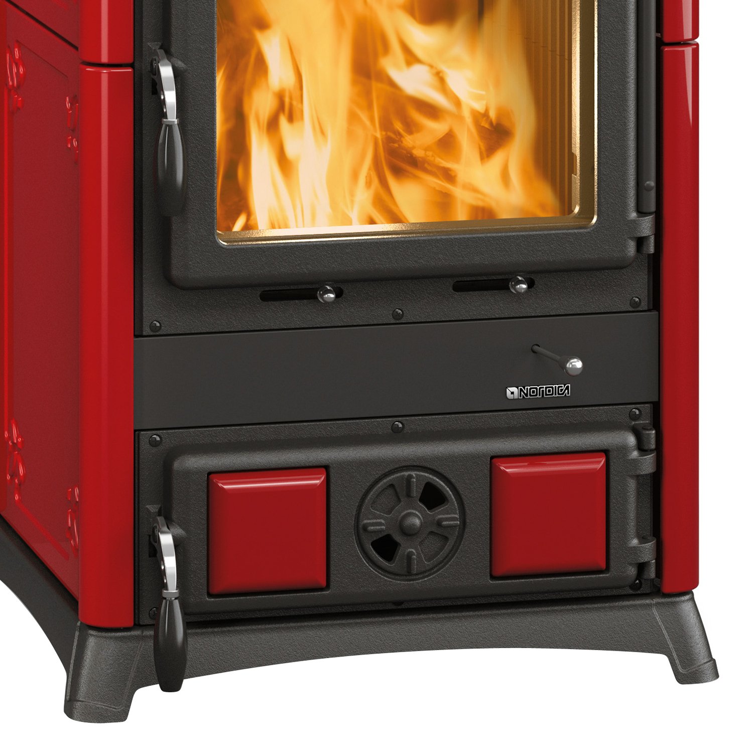 Deckel, Tür, Brennraum und Sockel bestehen aus massivem Gusseisen, was den Ofen besonders robust und wartungsarm macht.