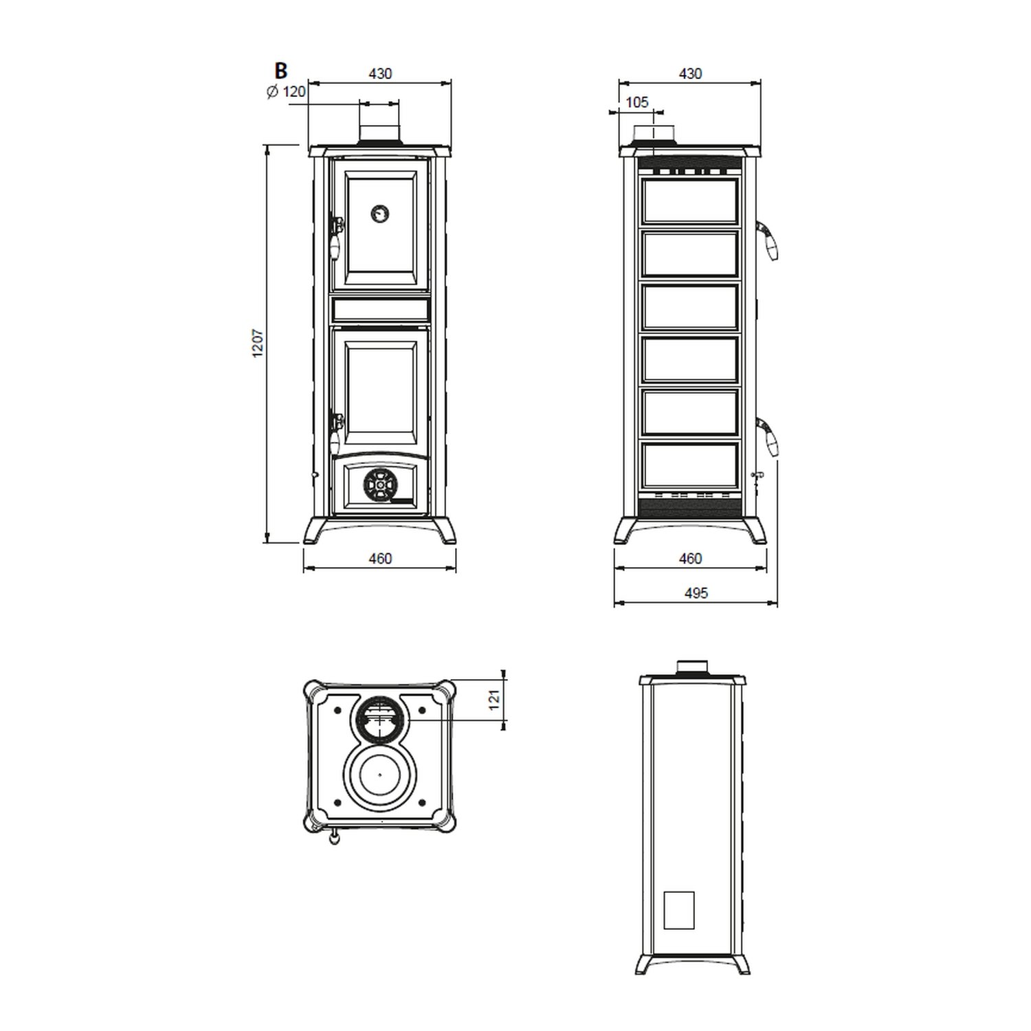 Rauchrohranschluss: 120 mm (oben)