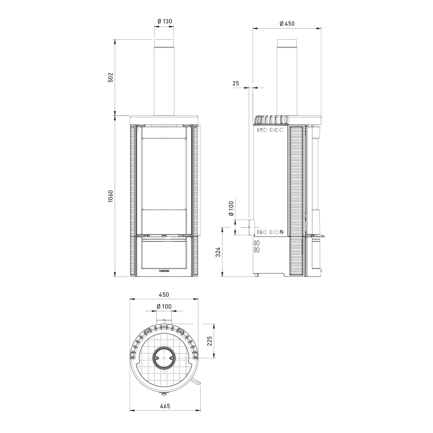 Rauchrohranschluss: 130 mm (oben)