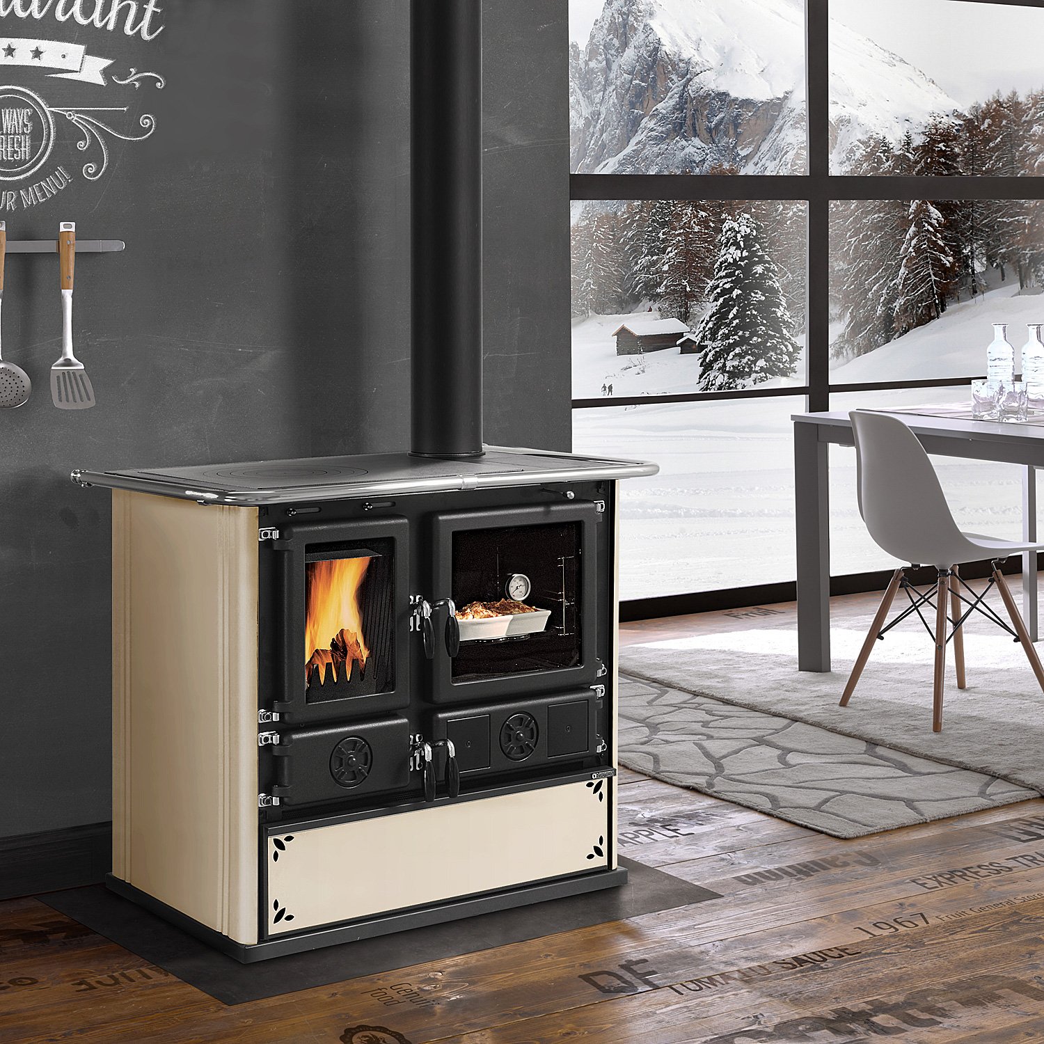Mit seiner großzügigen Kochfläche, der Aussparung für ein Wasserschiff sowie dem 41-Liter-Backfach aus porzellanemailliertem Stahl ermöglicht der Rosa 5.0 das Zubereiten aller Speisen – auch bei Stromausfall. Ein integriertes Thermometer erleichtert die genaue Temperaturkontrolle während des Backens.