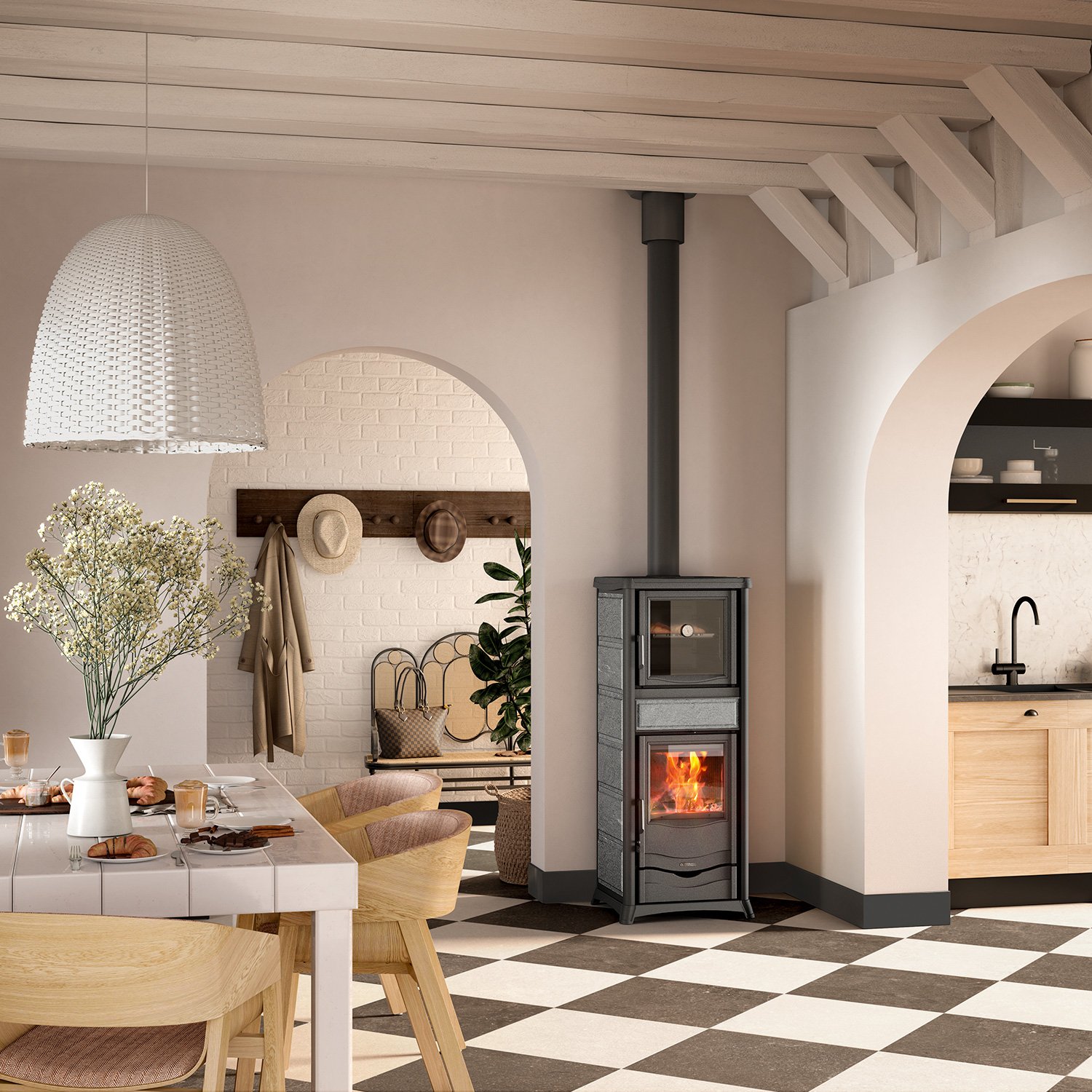 Das integrierte Backfach ermöglicht das Zubereiten von Brot, Aufläufen, Fleisch und vielen anderen Speisen – und das mit der natürlichen Hitze des Kaminofens.
