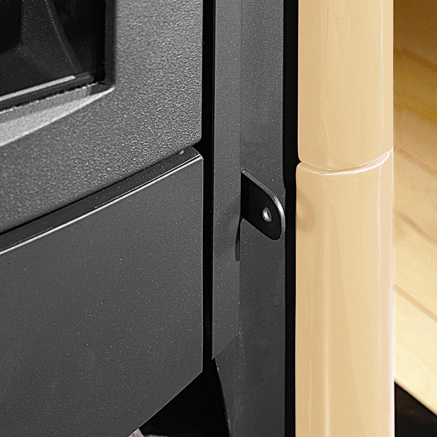 Zur Ausstattung gehören ein praktisches Aschefach, ein Rüttelrost für schnelle Reinigung, ein Holzfach, eine wirkungsvolle Scheibenspülung sowie die getrennt regelbare Primär- und Sekundärluftzufuhr, mit der Sie die Verbrennung jederzeit präzise steuern.