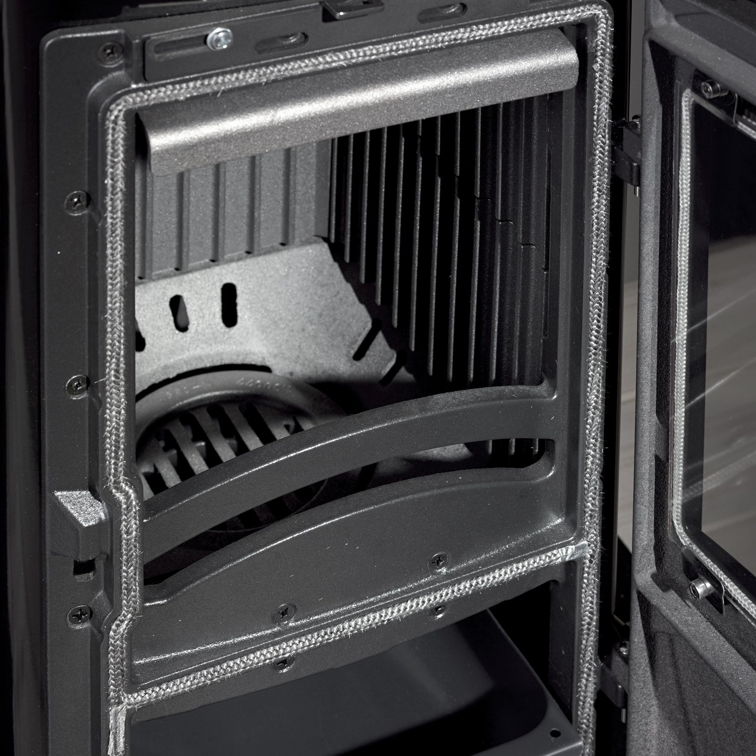 Tür und Brennraum aus Gusseisen gewährleisten optimale Hitzebeständigkeit und Lebensdauer.