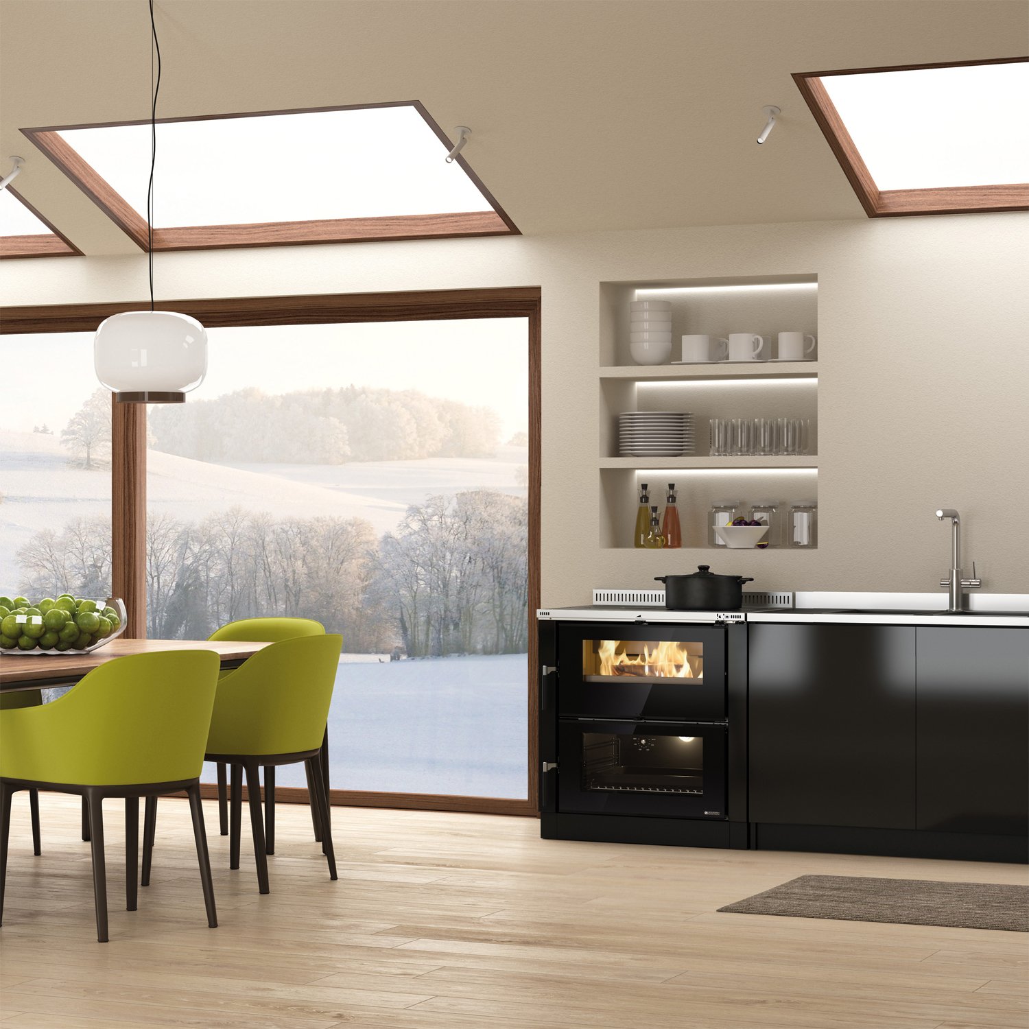 Der La Nordica Küchenofen Verona XXL (7,5 kW) bietet ein großes 68-Liter-Backfach mit Beleuchtung, eine robuste Gusseisen-Kochplatte und einen geräumigen Brennraum. Ideal für die nahtlose Integration in Ihre Küchenzeile – ohne seitliche Sicherheitsabstände.