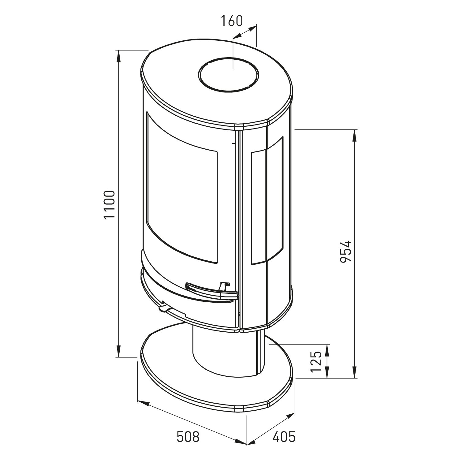 Rauchrohr: Ø 150 mm (oben oder hinten)