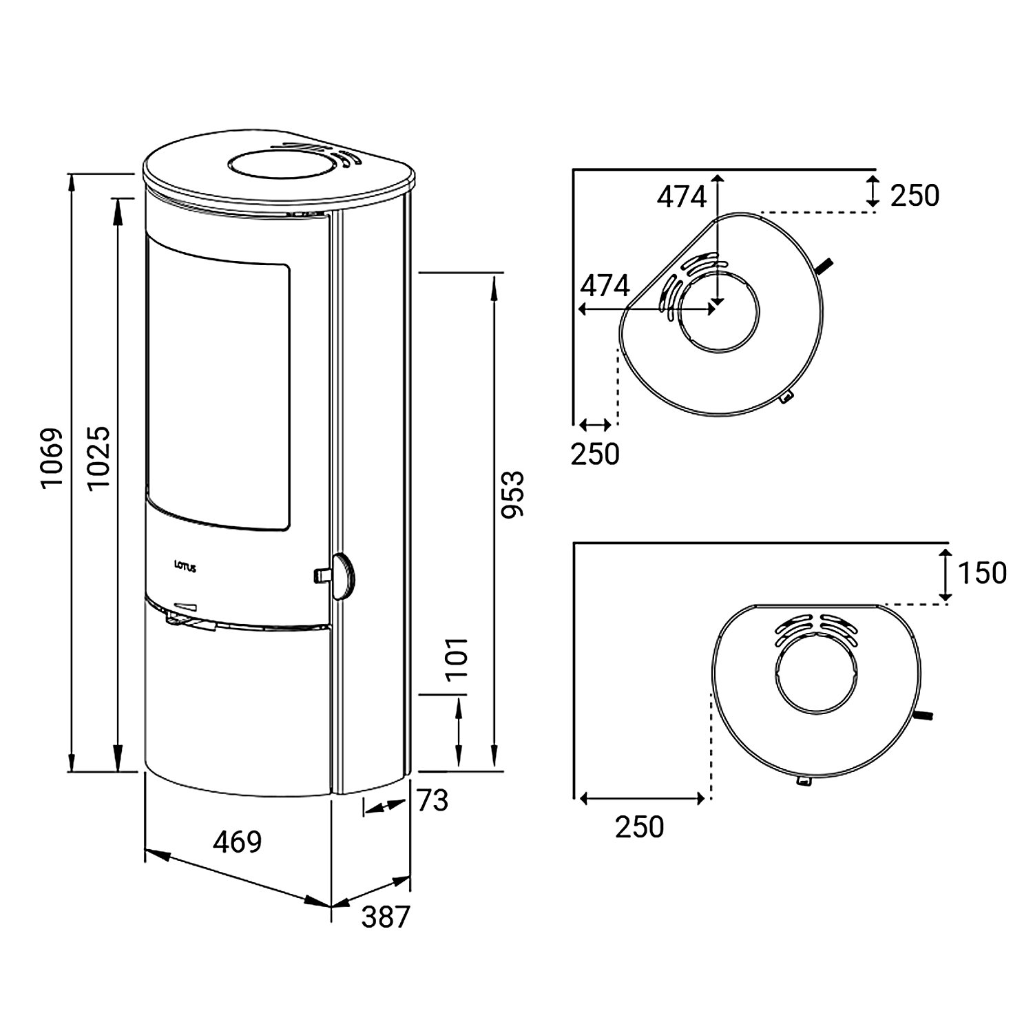 Der Lotus Prestige Basic ist ein kompakter 5-kW-Kaminofen mit 80,5 % Wirkungsgrad, großer Panoramascheibe, Soft-Close-Tür und elegantem Design. Mit nur 38,7 cm Tiefe eignet er sich ideal für kleine Räume, Ecken und moderne Wohnbereiche. Rauchrohr oben oder hinten sowie verschiedene Tür- und Griffvarianten stehen zur Auswahl.