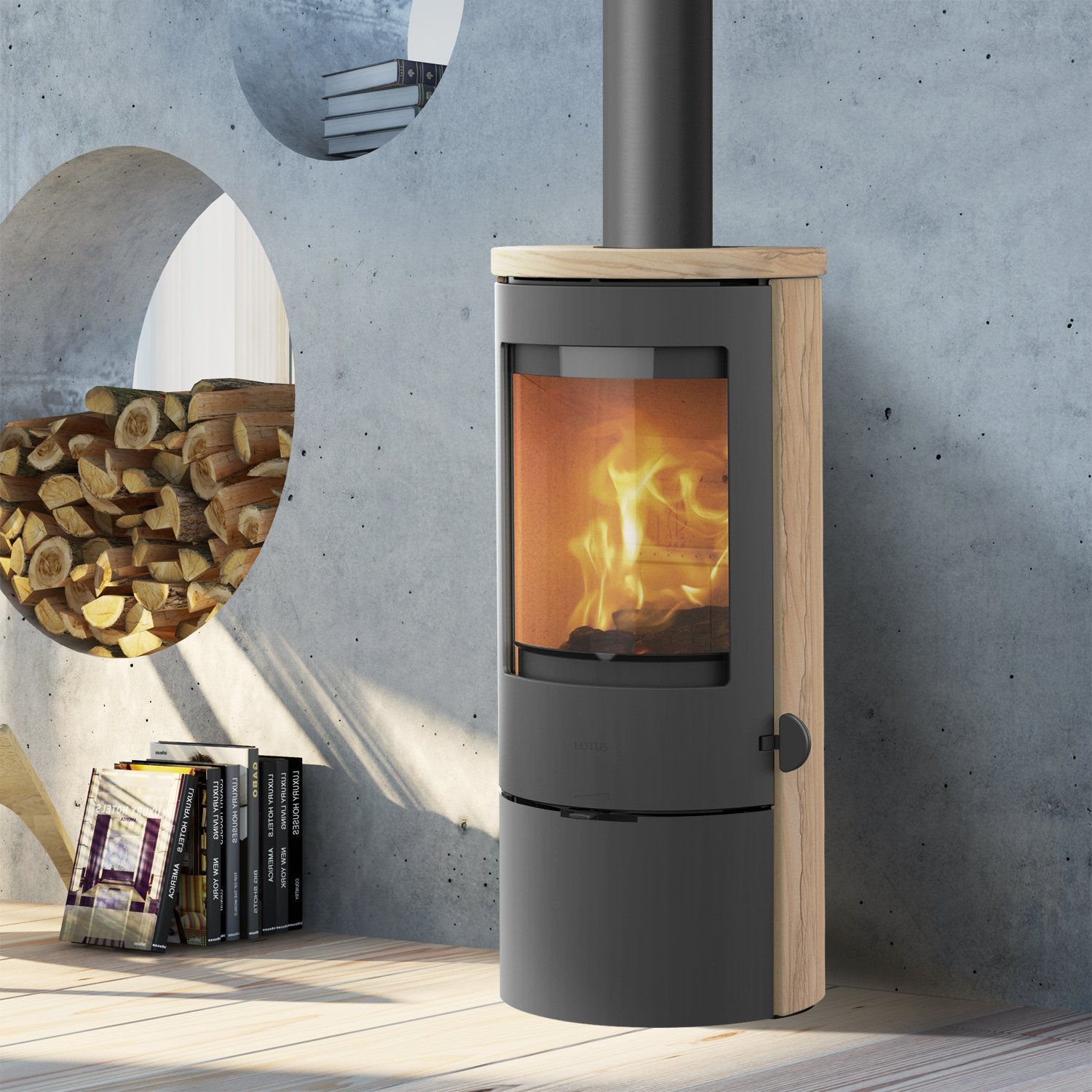 Der Lotus Prestige Basic Sand ist ein hochwertiger 5 kW Kaminofen mit einzigartiger Sandsteinverkleidung, hoher Wärmespeicherung und moderner Turbo-Clean Scheibenreinigung. Ideal für Räume bis 120 m³, flexible Installation dank Abgang oben oder hinten sowie individuelle Tür- und Griffvarianten. Skandinavische Qualität und elegantes Design vereint in einem leistungsstarken Holzofen.
