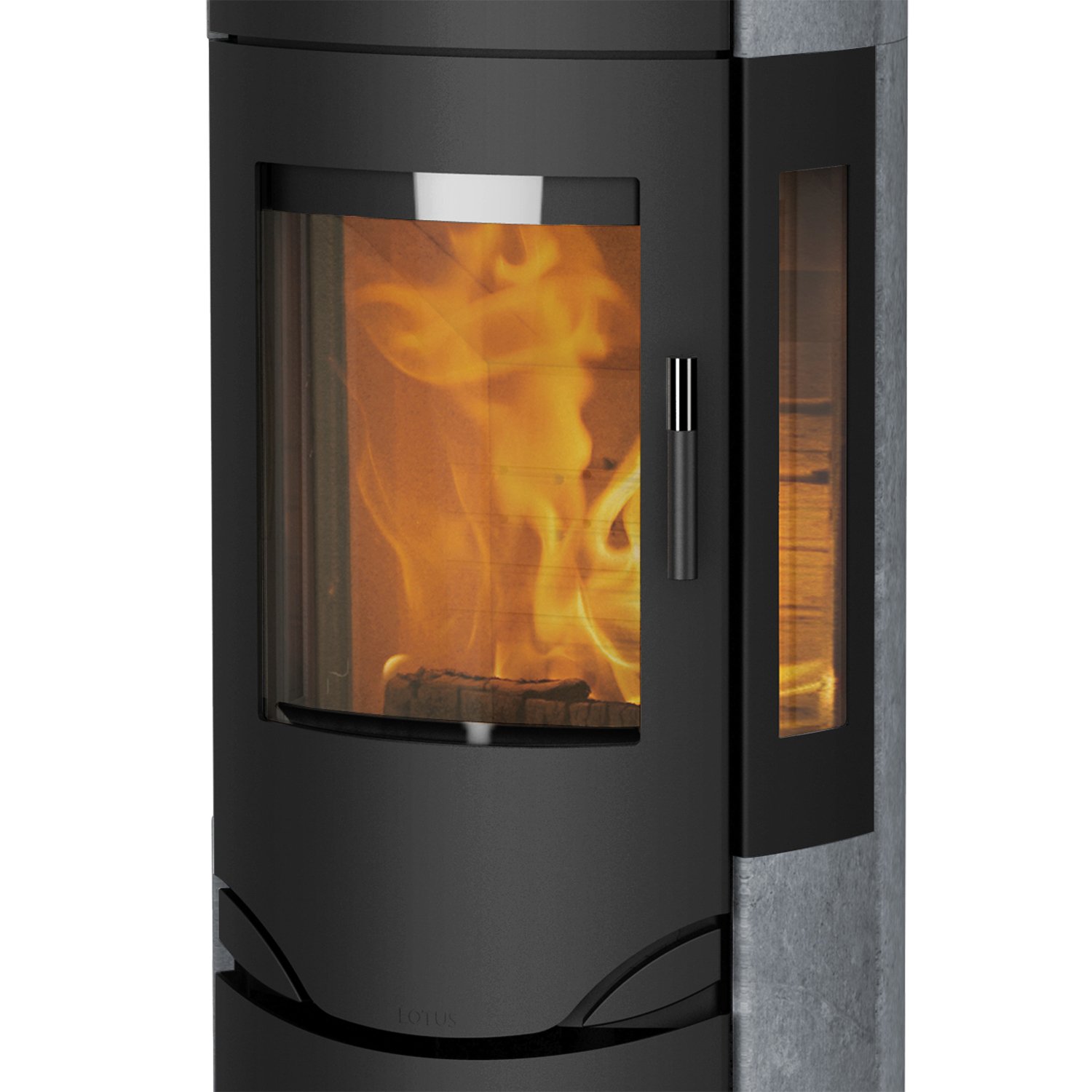 Wie bei allen Lotus-Modellen steht auch bei diesem Kaminofen die Benutzerfreundlichkeit an erster Stelle: Ein einziger Luftschieber steuert alle Luftströme gleichzeitig und ermöglicht so eine saubere, effiziente und komfortable Verbrennung.