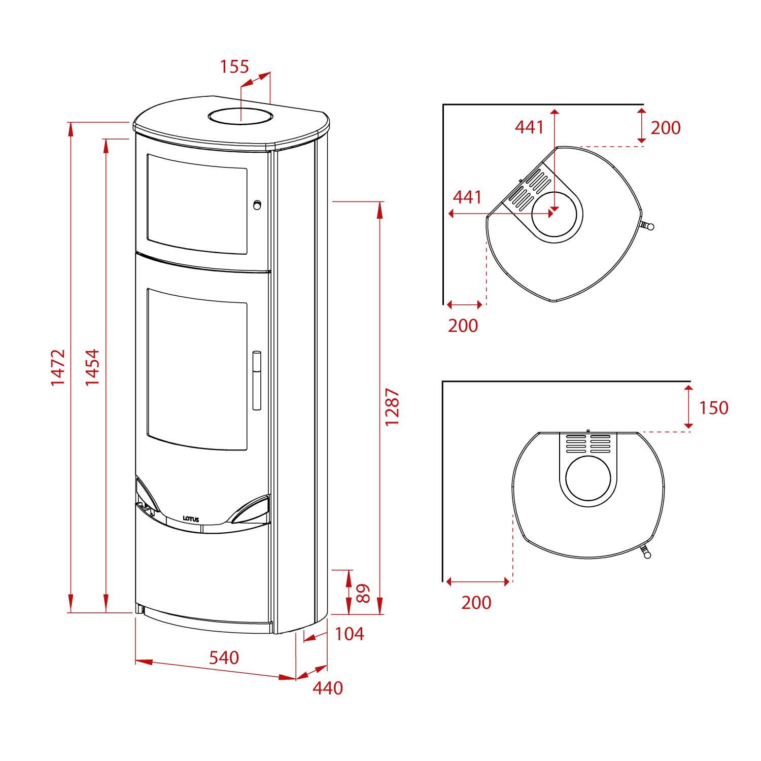Lotus Prio 7 Kaminofen – 7 kW, Backfach, Turbo-Clean, Clean Burn, Backofenfunktion, Bauart 1