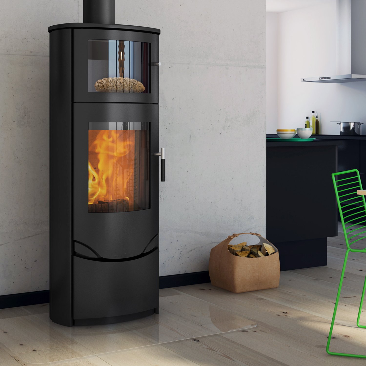 Der Lotus Prio 7 Kaminofen vereint stilvolles dänisches Design mit praktischer Backofenfunktion. Mit Turbo-Clean-Scheibenreinigung, Clean-Burn-Verbrennung und integriertem Backfach bietet er ein einmaliges Feuer- und Kocherlebnis – effizient, modern und hochwertig gefertigt.