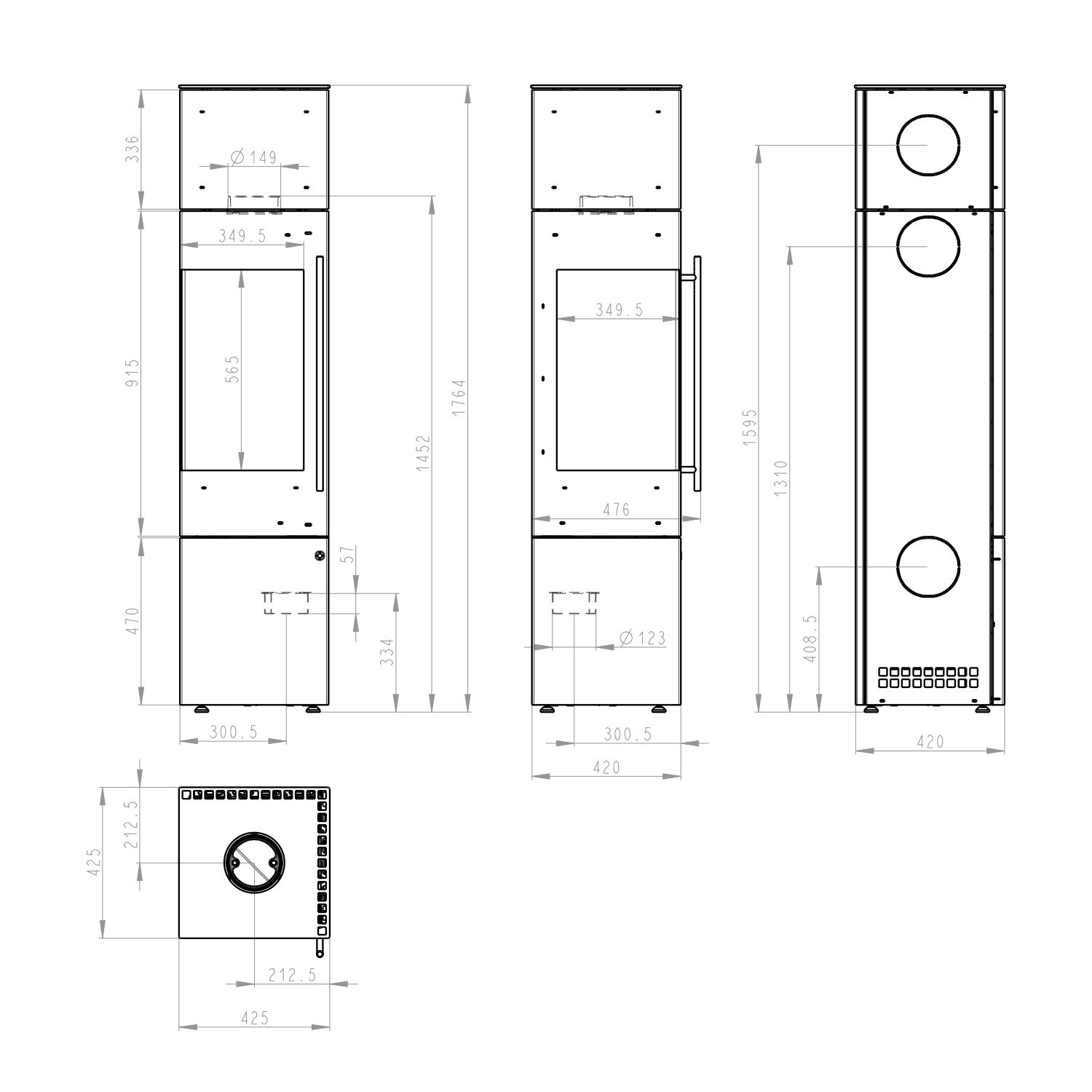 Maße (H × B × T): 1764 × 425 × 425 mm