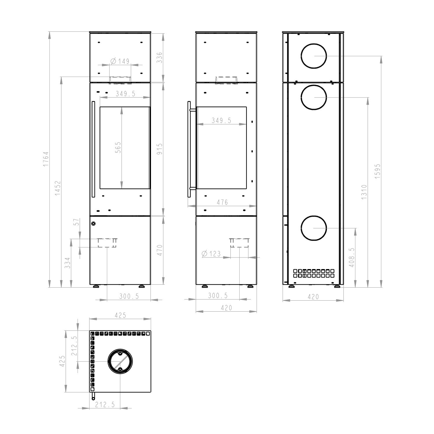 Maße (HxBxT): 1764 × 425 × 425 mm
