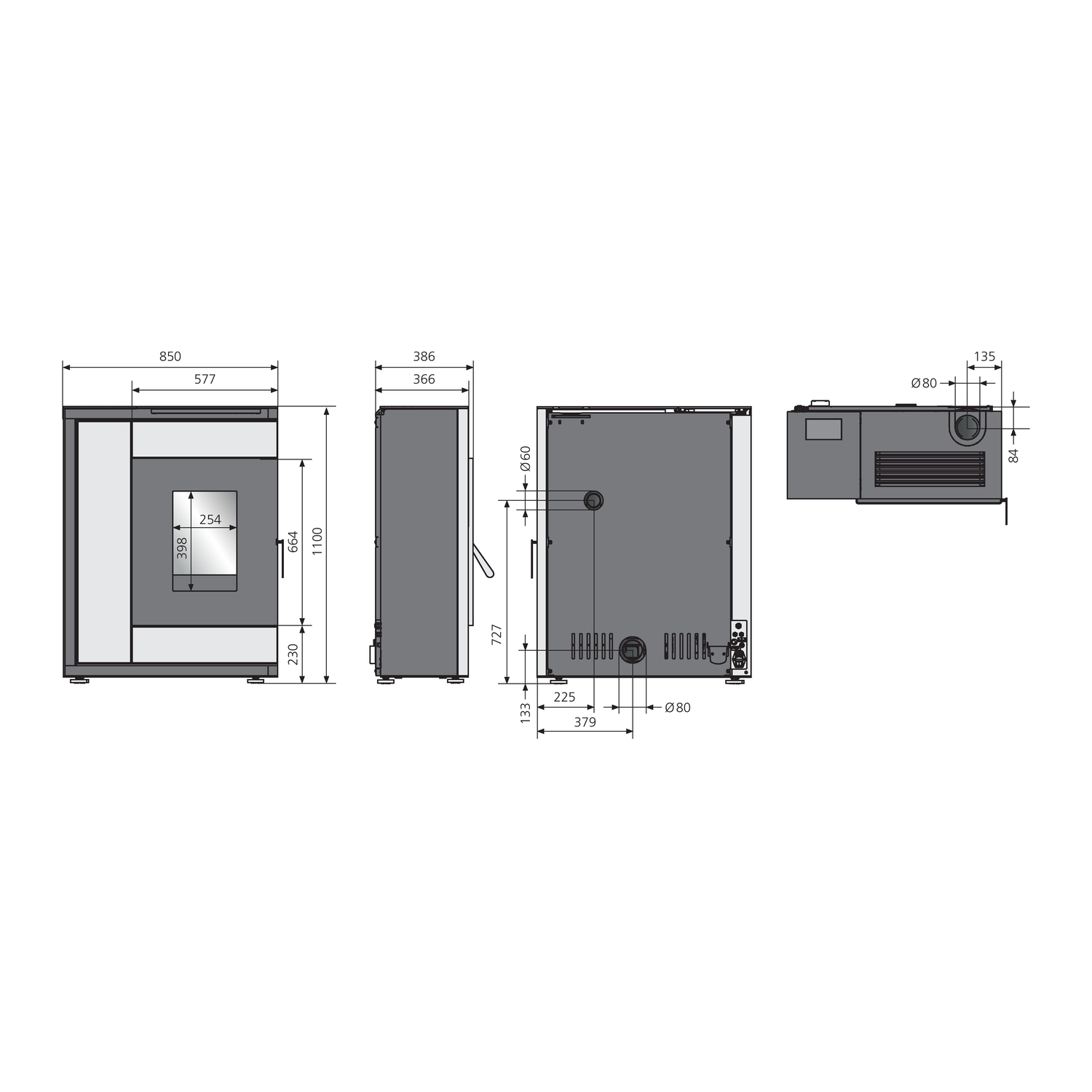 Rauchrohranschluss: Ø 80 mm (hinten, oben)